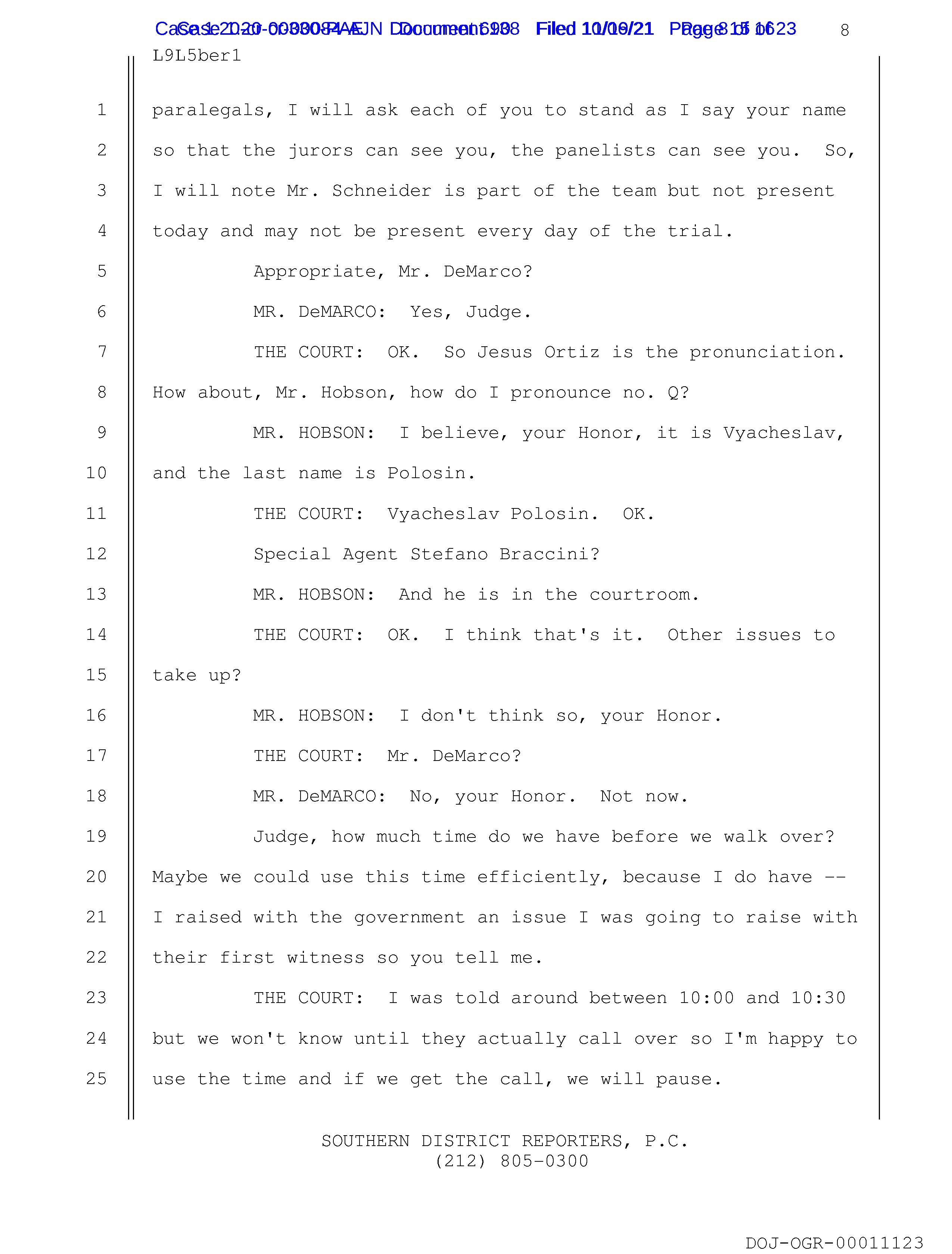 11 THE COURT: Vyacheslav Polosin. OK.