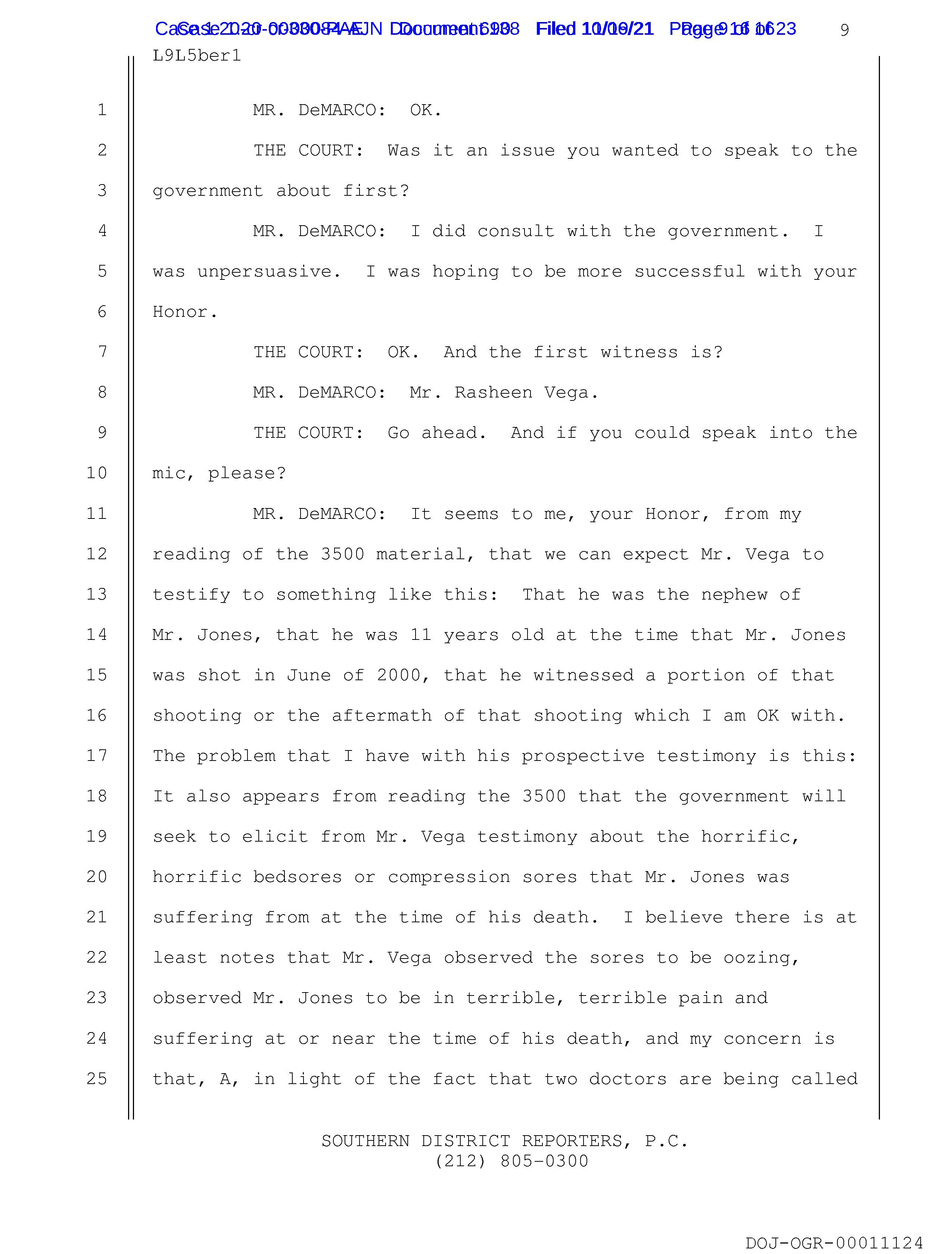 8 MR. DeMARCO: Mr. Rasheen Vega.