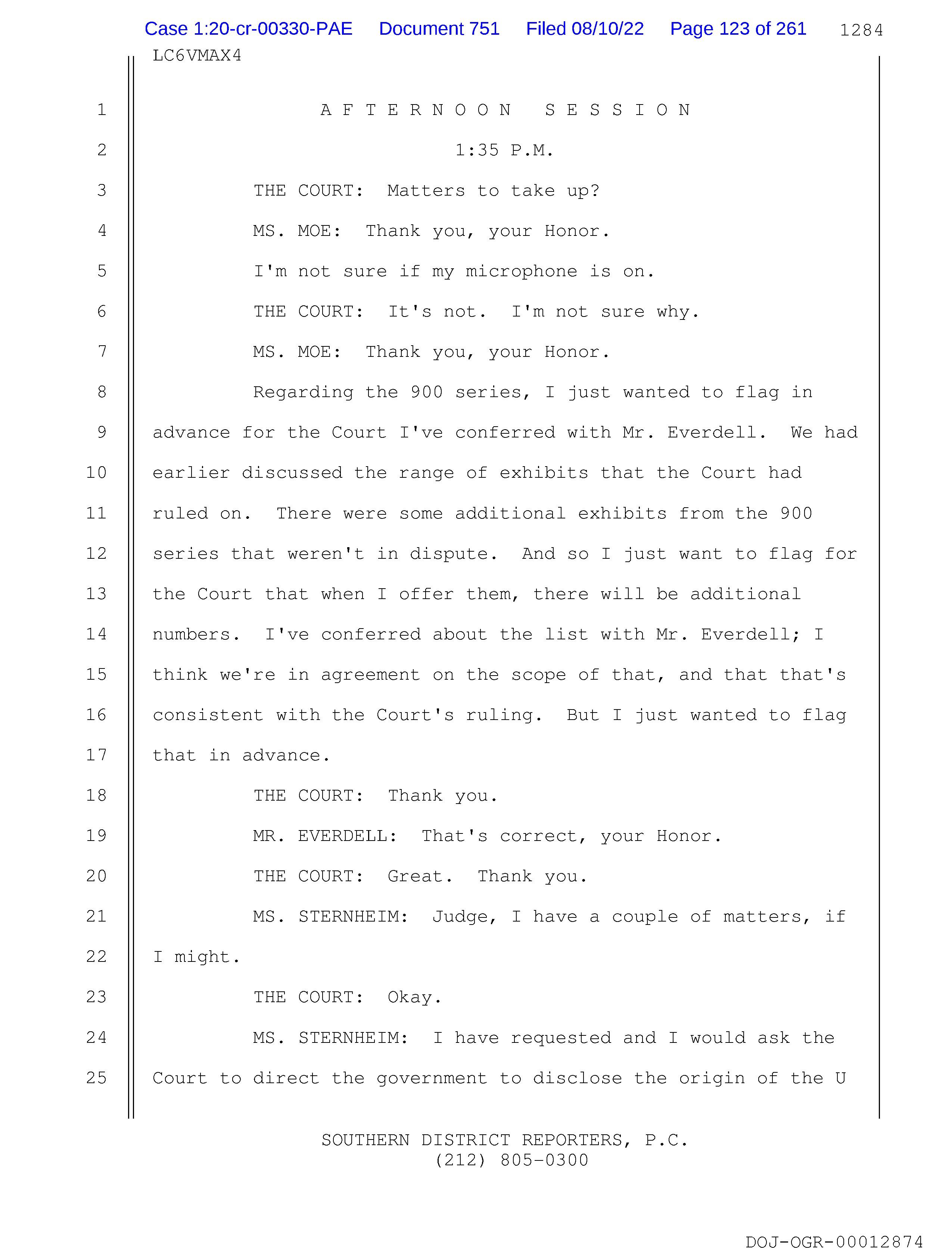 Case 1:20-cr-00330-PAE Document 751 Filed 08/10/22 Page 123 of 261 1284