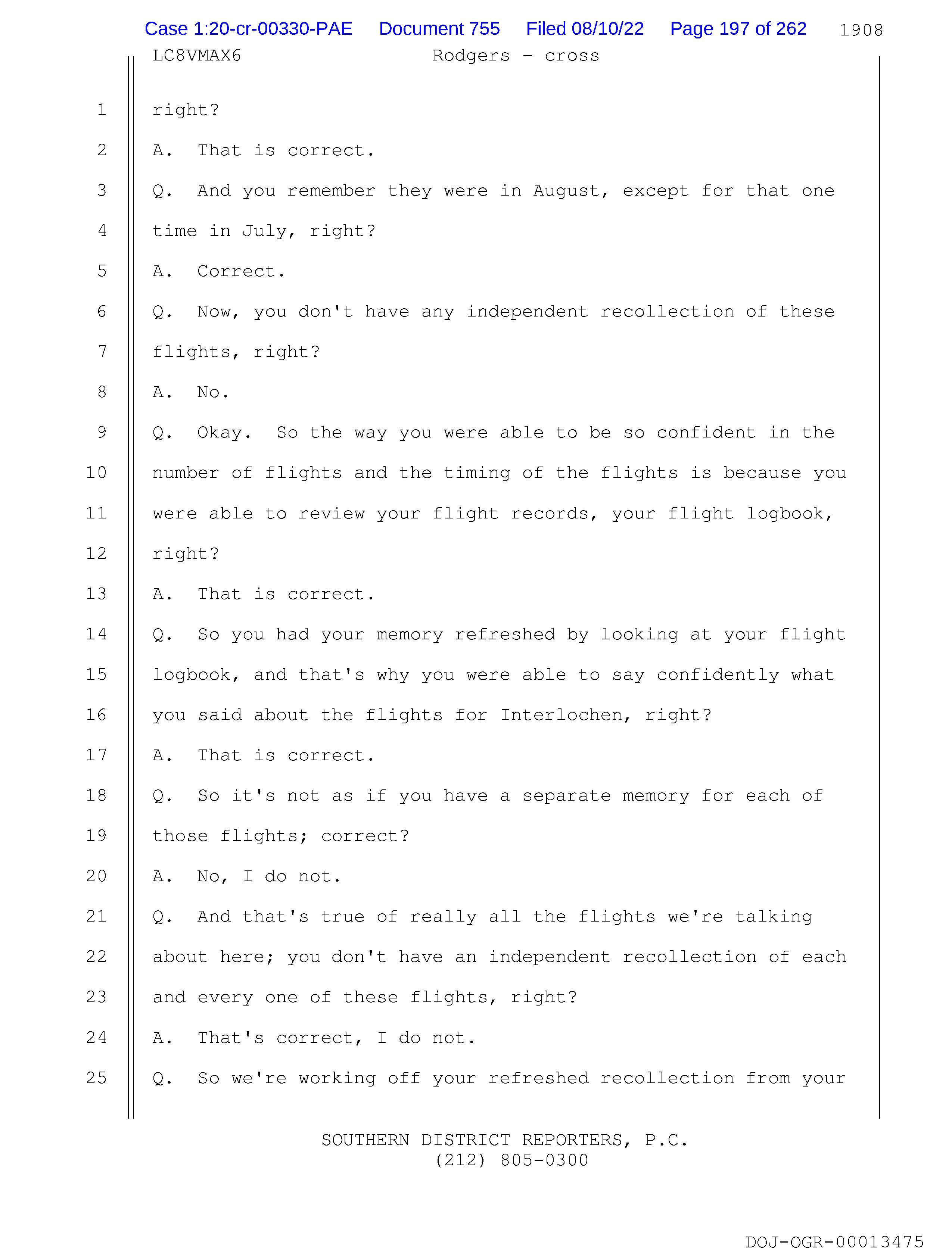 Q. So you had your memory refreshed by looking at your flight
