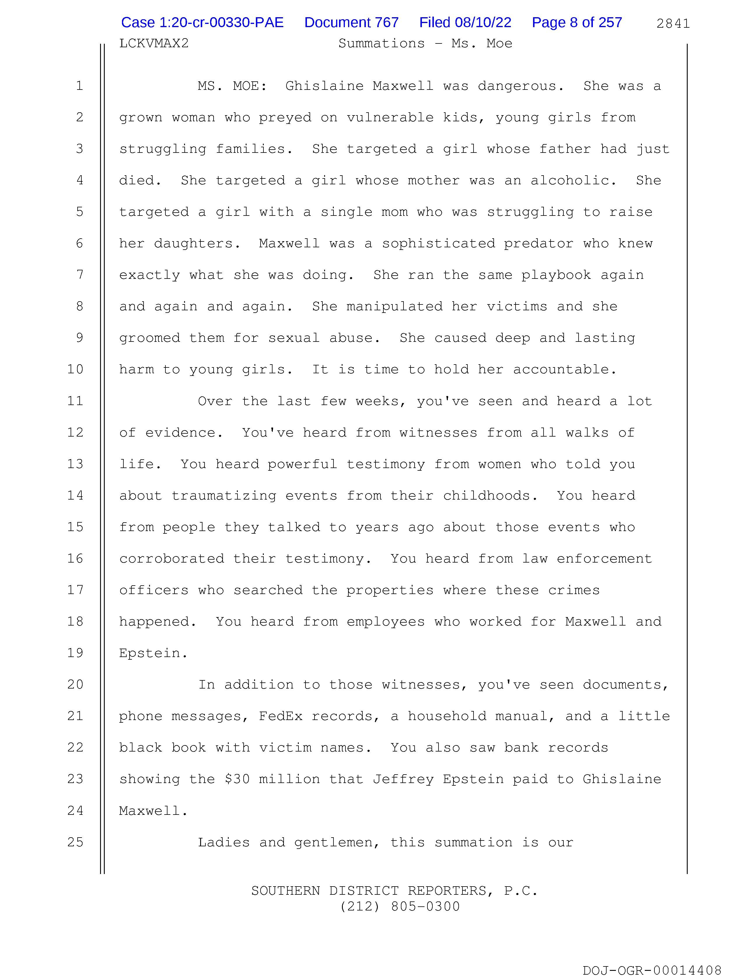 MS. MOE: Ghislaine Maxwell was dangerous. She was a