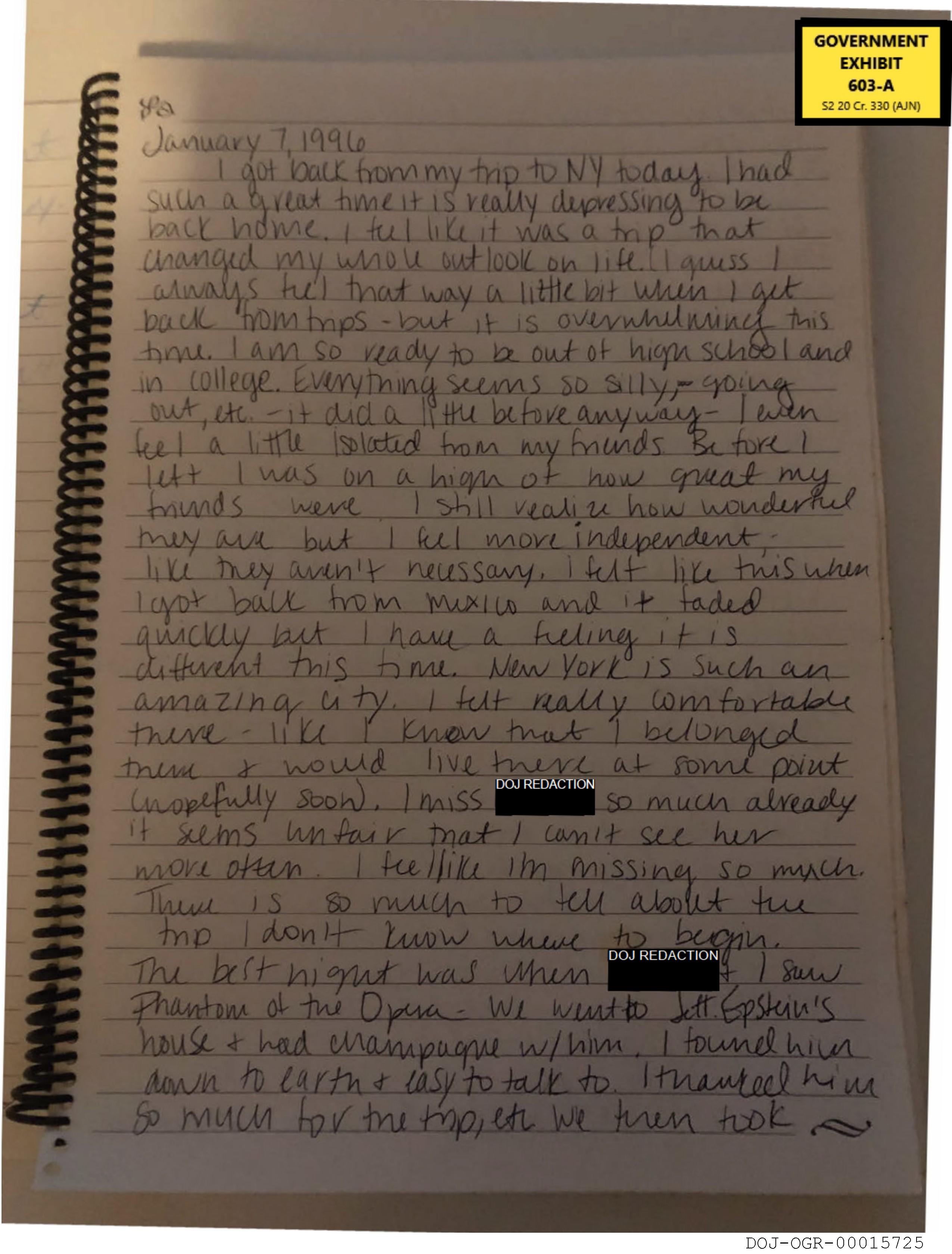 GOVERNMENT EXHIBIT 603-A $2 20 Cr. 330 (AJN) DOJ REDACTION DOJ REDACTION DOJ-OGR-00015725