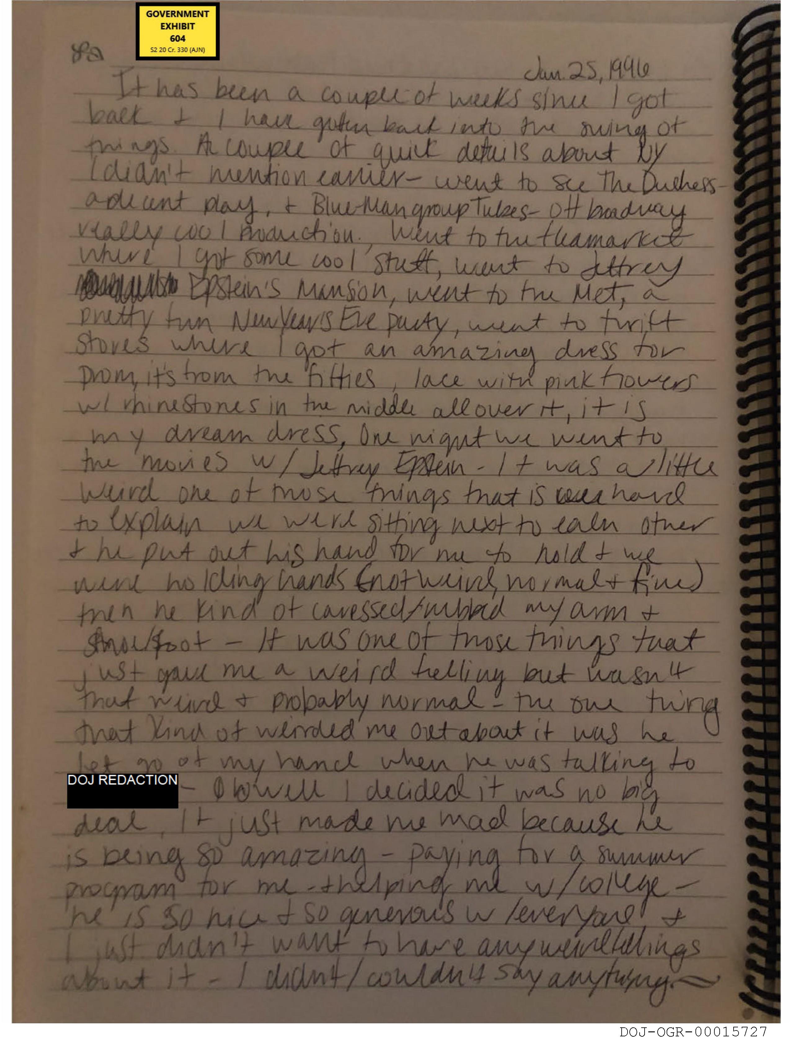 GOVERNMENT EXHIBIT 604 S2 20 Cr. 330 (AJN) DOJ REDACTION DOJ-OGR-00015727