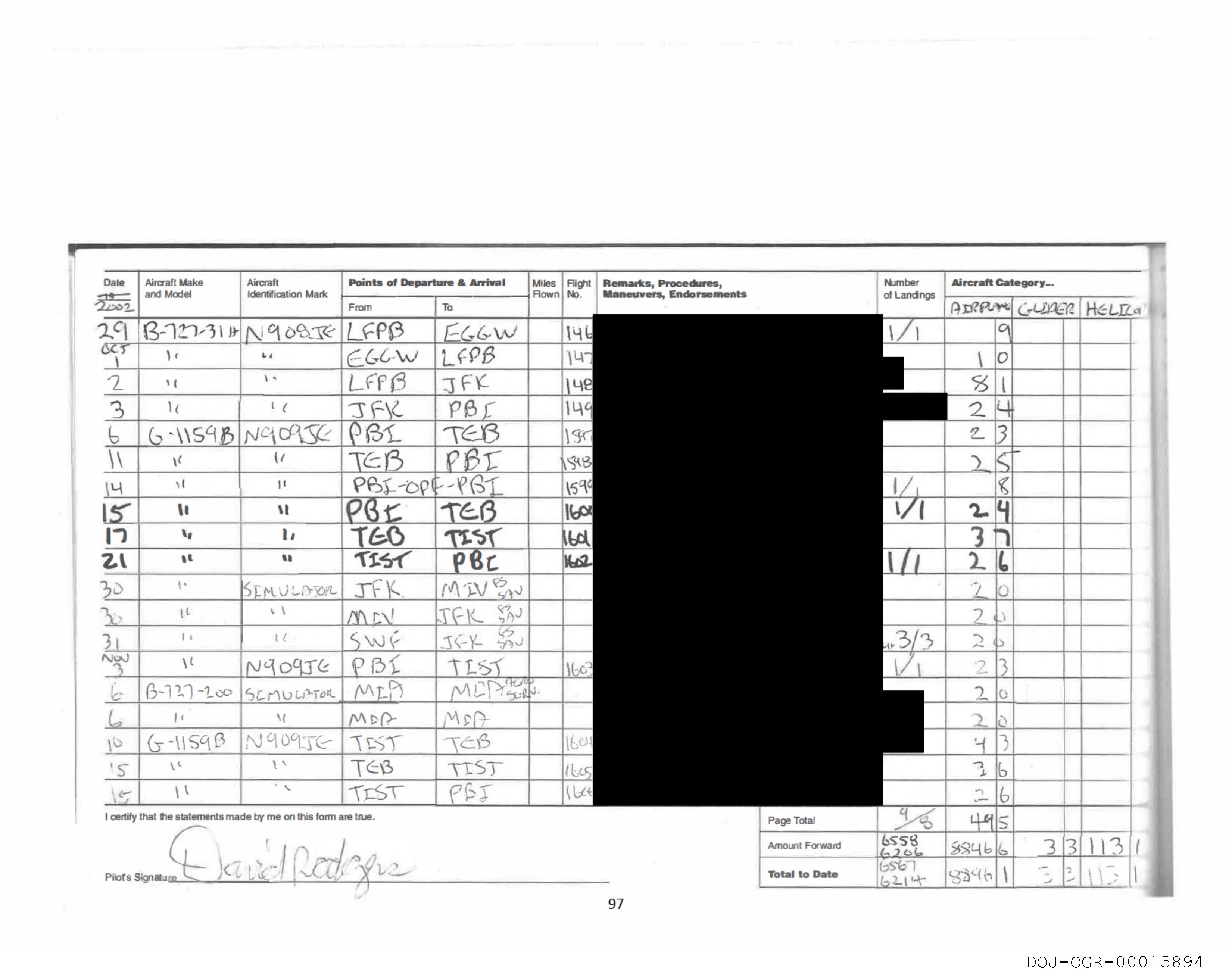 Pilots Signature Kt Le ‘ . _ = Total to Date 3 ‘g } yO \