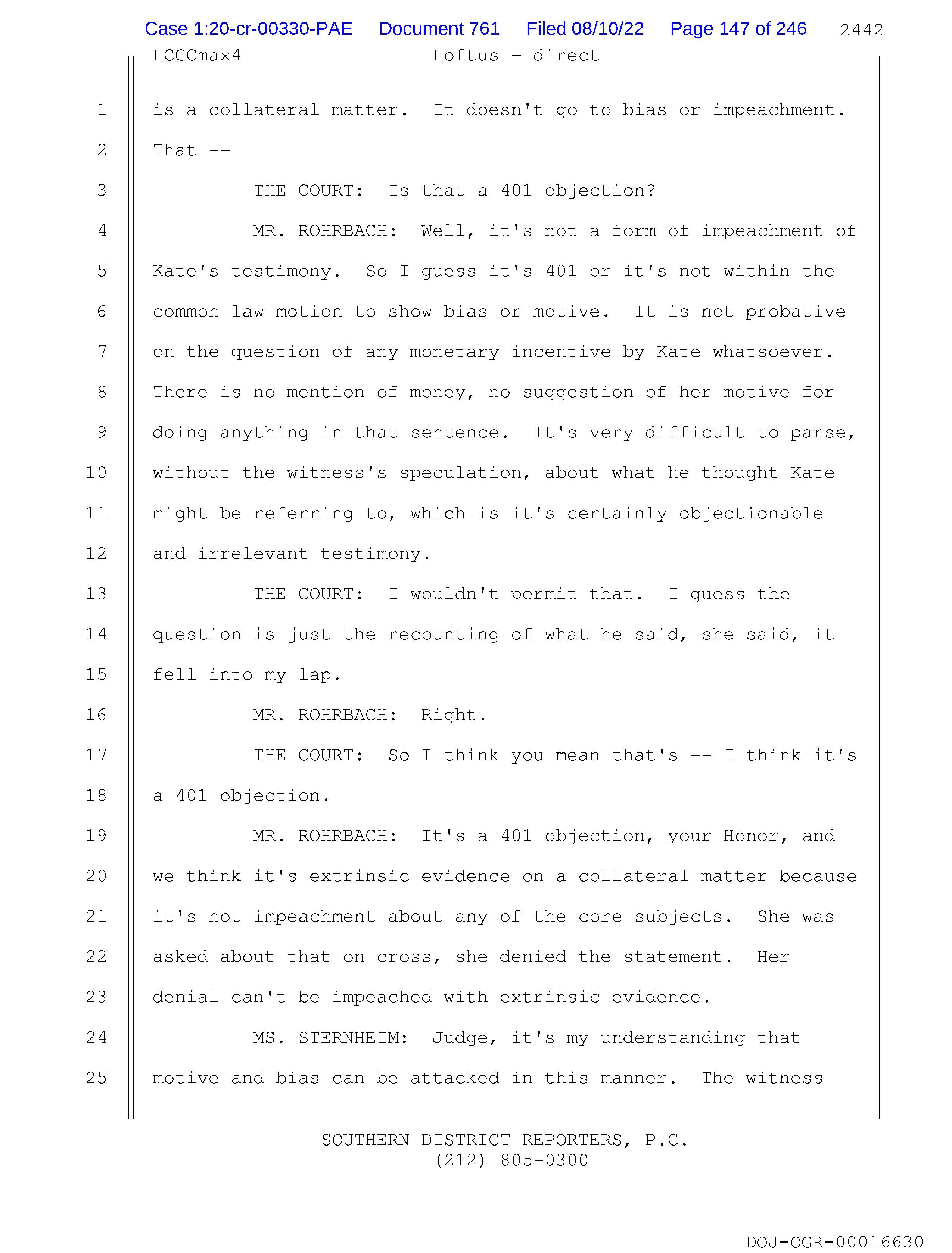 Kate's testimony. So I guess it's 401 or it's not within the