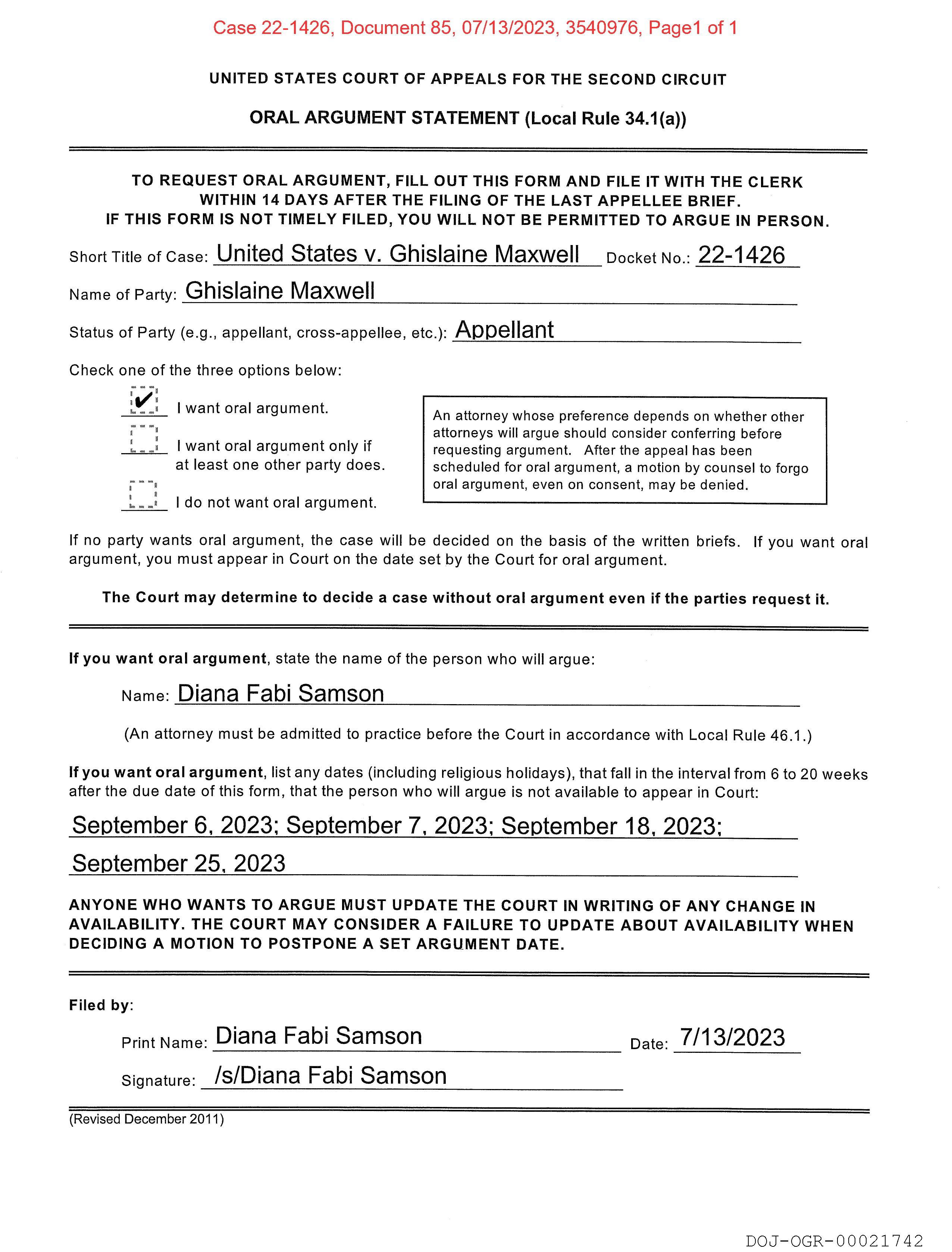 Short Title of Case: United States v. Ghislaine Maxwell — pocket No.: 22-1426