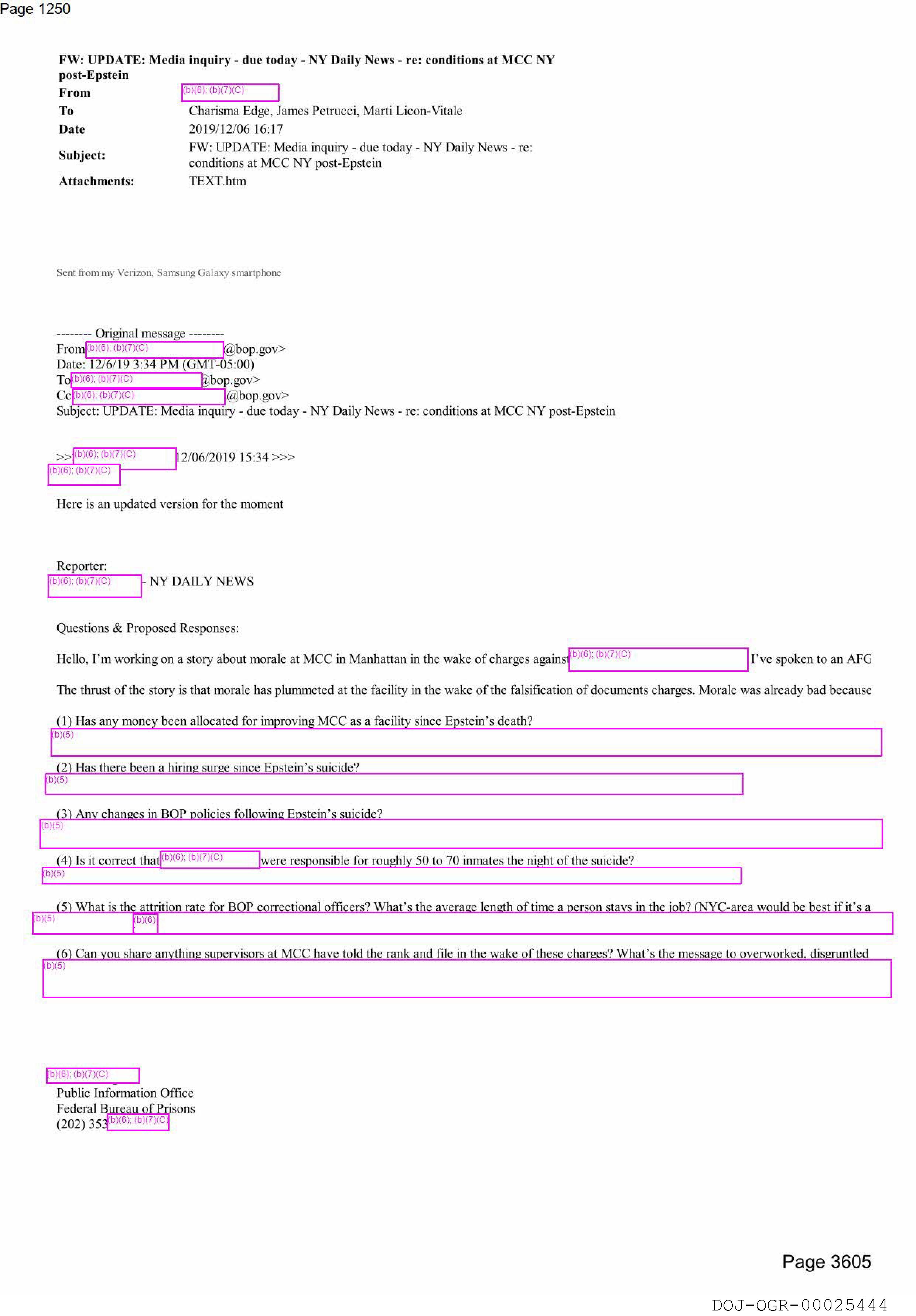 FW: UPDATE: Media inquiry - due today - NY Daily News - re: conditions at MCC NY
