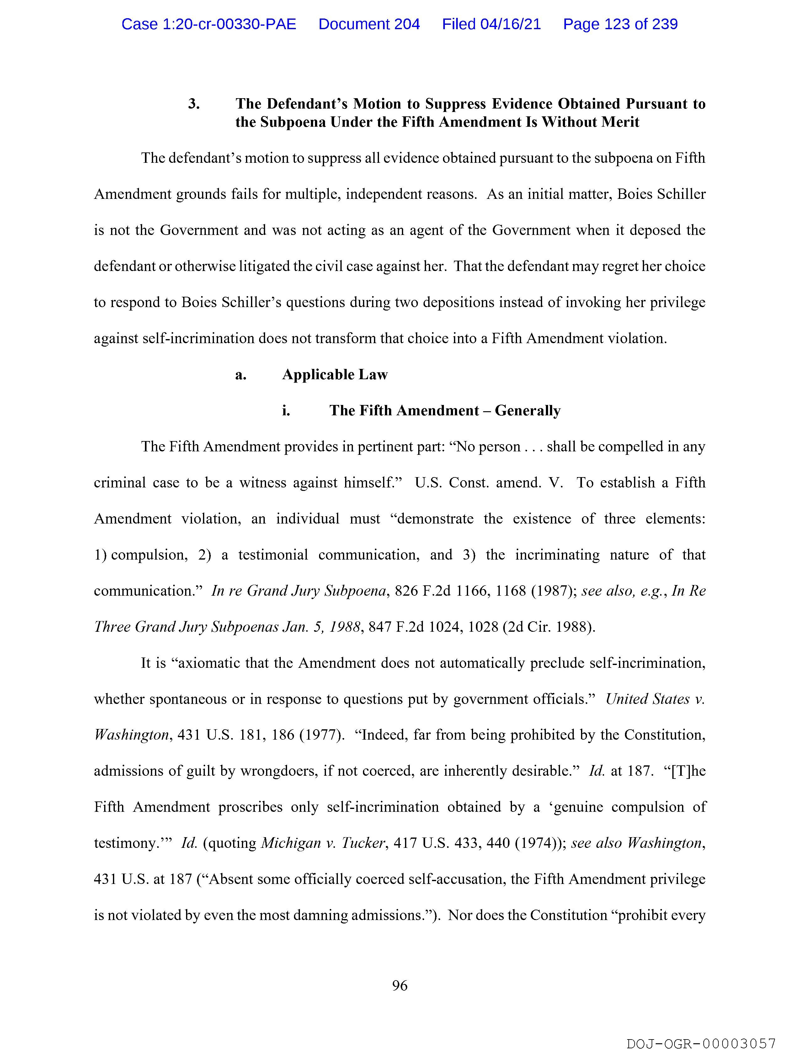 the Subpoena Under the Fifth Amendment Is Without Merit
