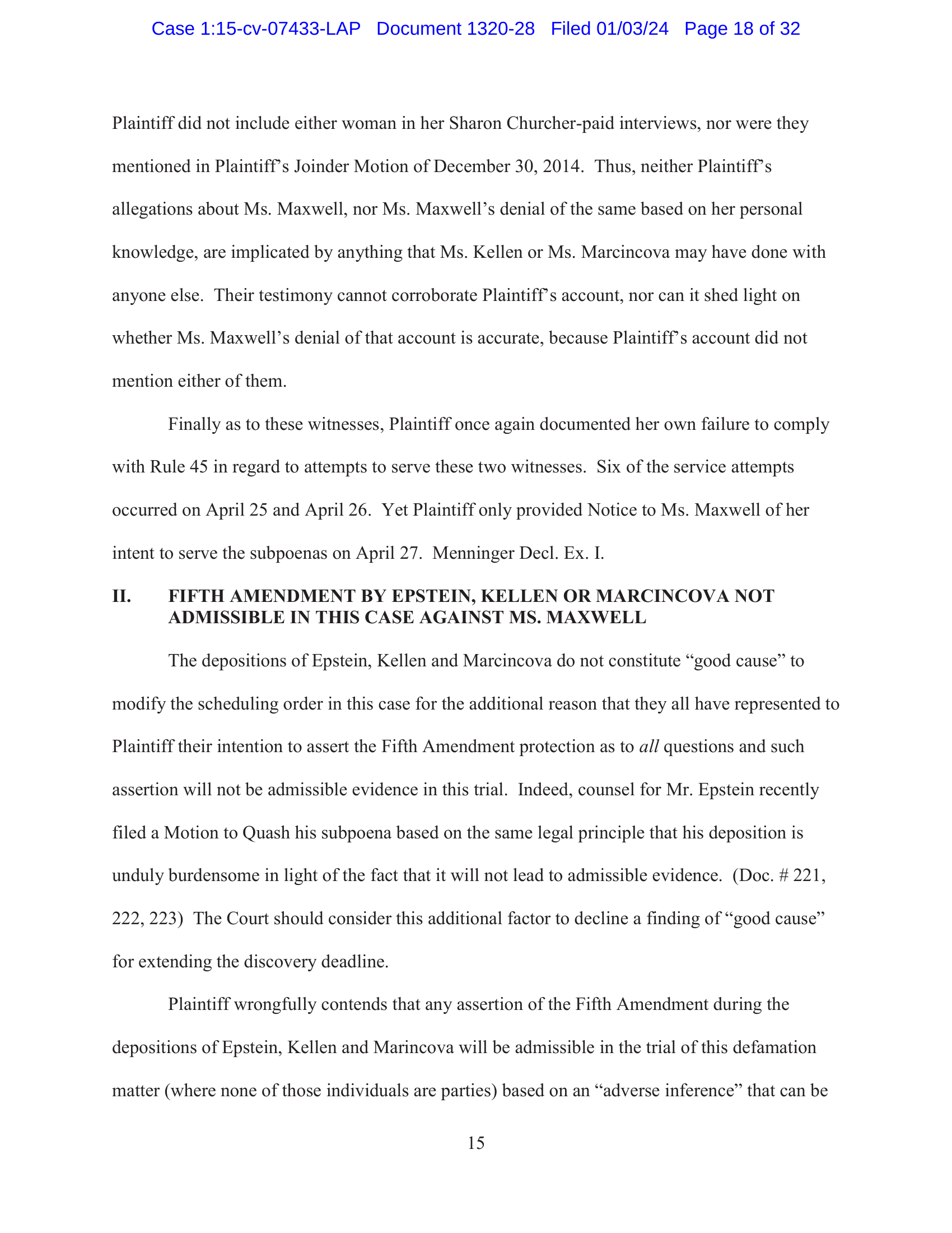 Il. FIFTH AMENDMENT BY EPSTEIN, KELLEN OR MARCINCOVA NOT
