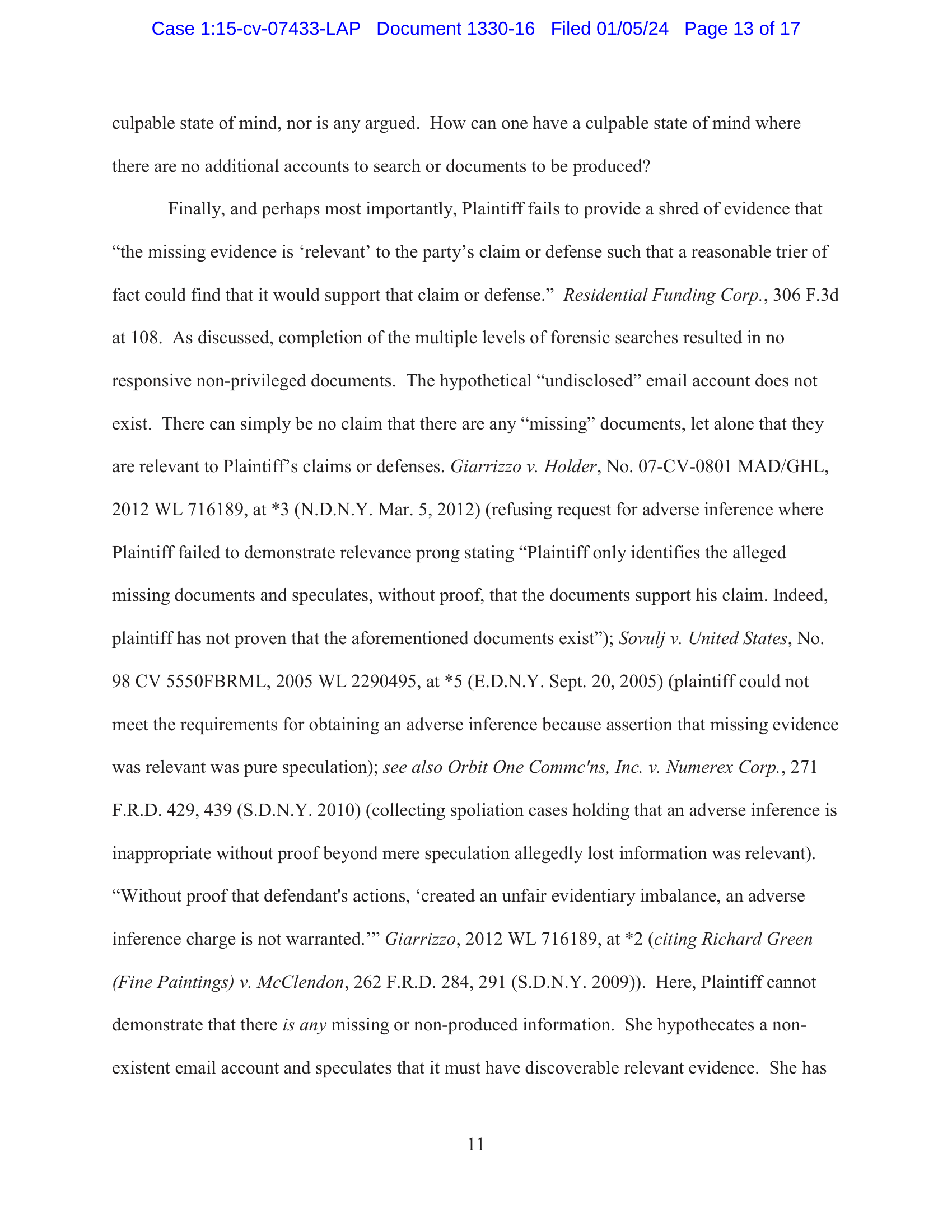 (Fine Paintings) v. McClendon, 262 F.R.D. 284, 291 (S.D.N.Y. 2009)). Here, Plaintiff cannot