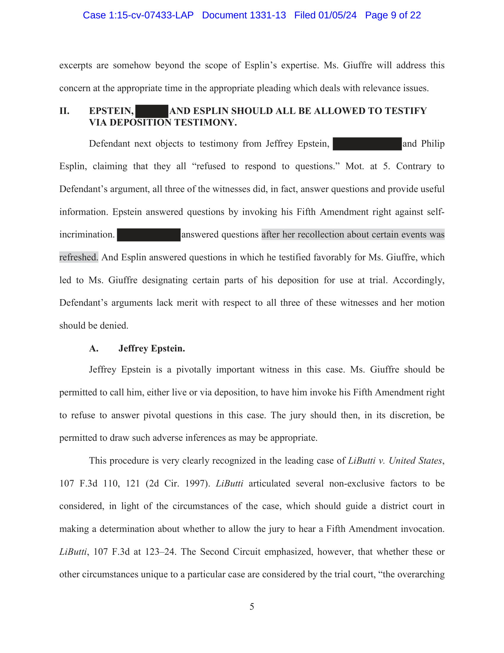 refreshed. And Esplin answered questions in which he testified favorably for Ms. Giuffre, which