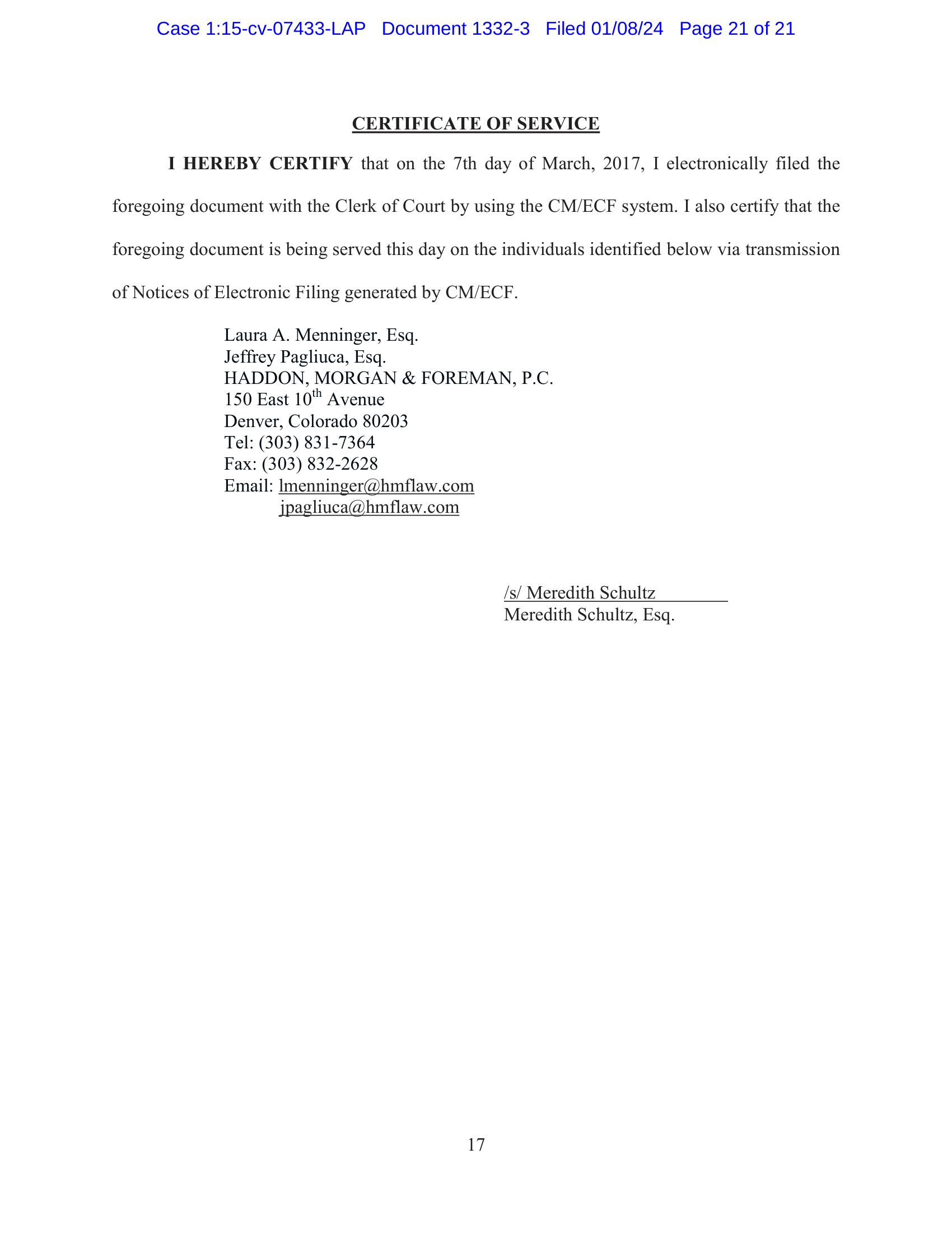 I HEREBY CERTIFY that on the 7th day of March, 2017, I electronically filed the