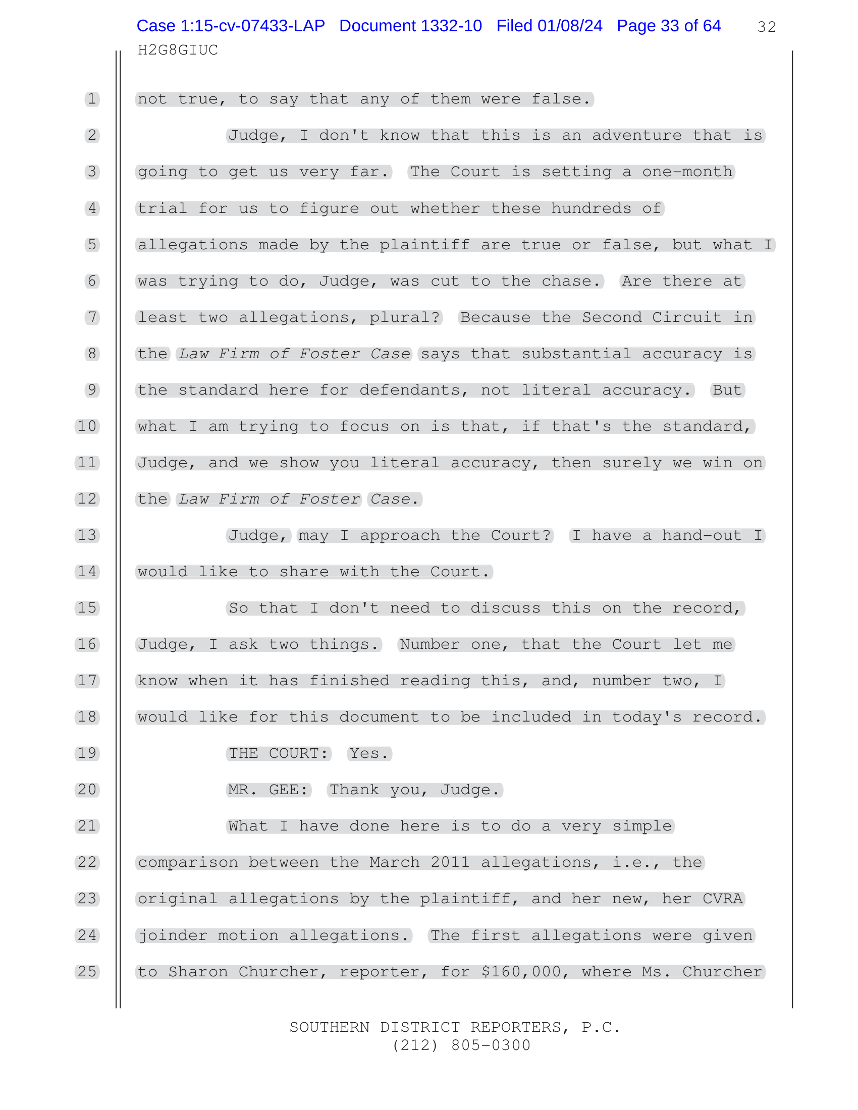 SOUTHERN DISTRICT REPORTERS, P.C.