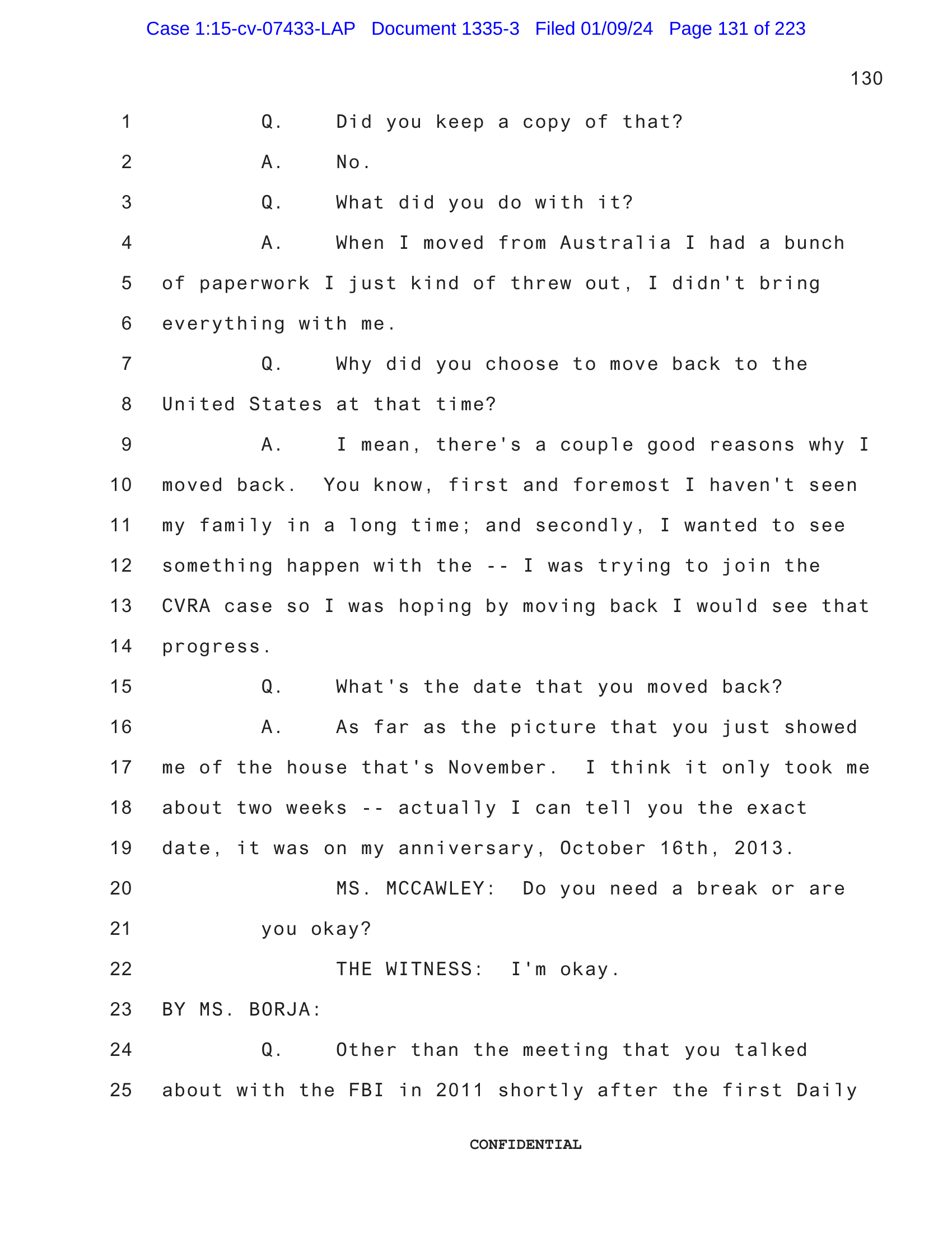 CVRA case so I was hoping by moving back I would see that