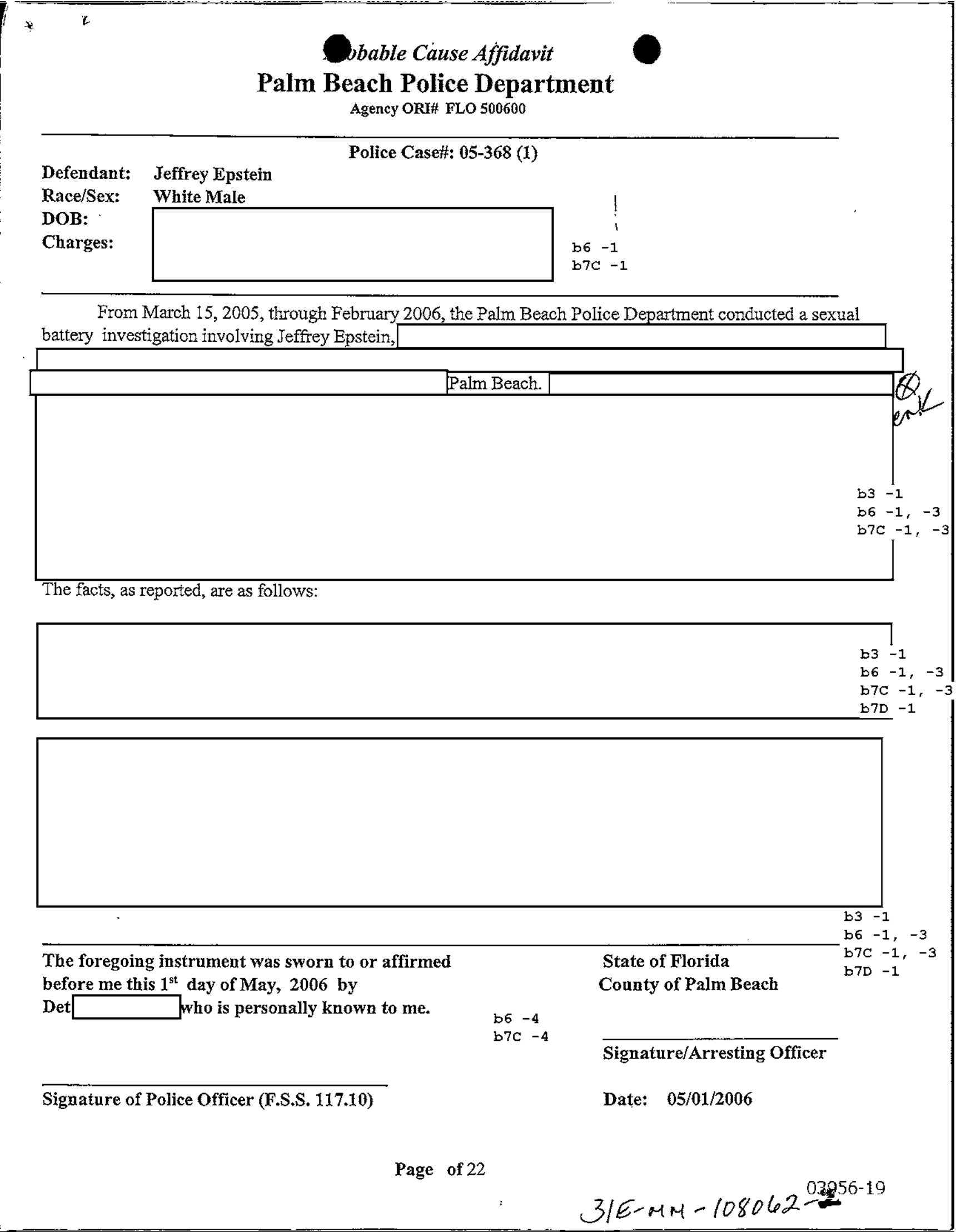 From March 15, 2005, through February 2006, the Palm Beach Police Department conducted a sexual
