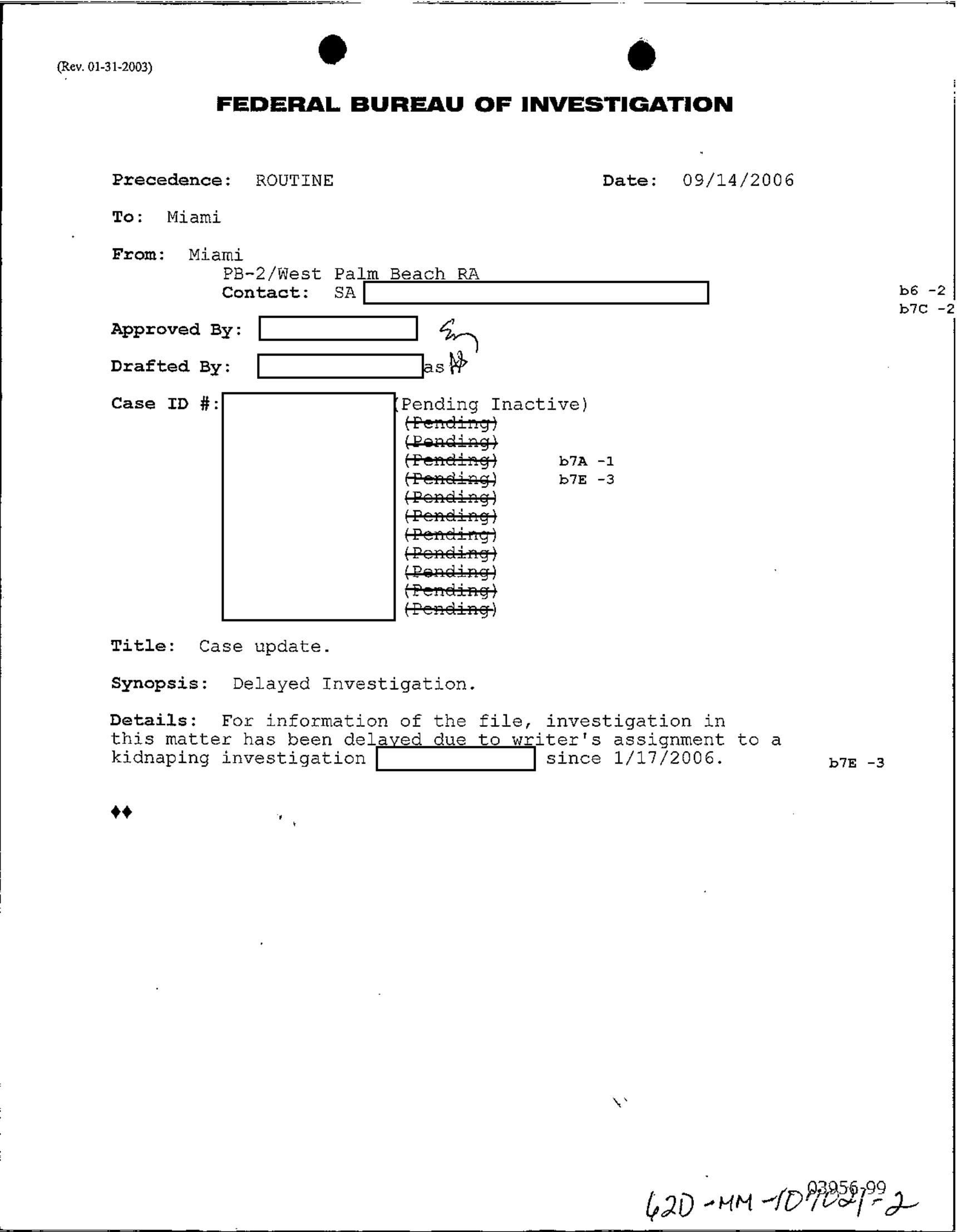 kidnaping investigation fd since 1/17/2006. b7E -3