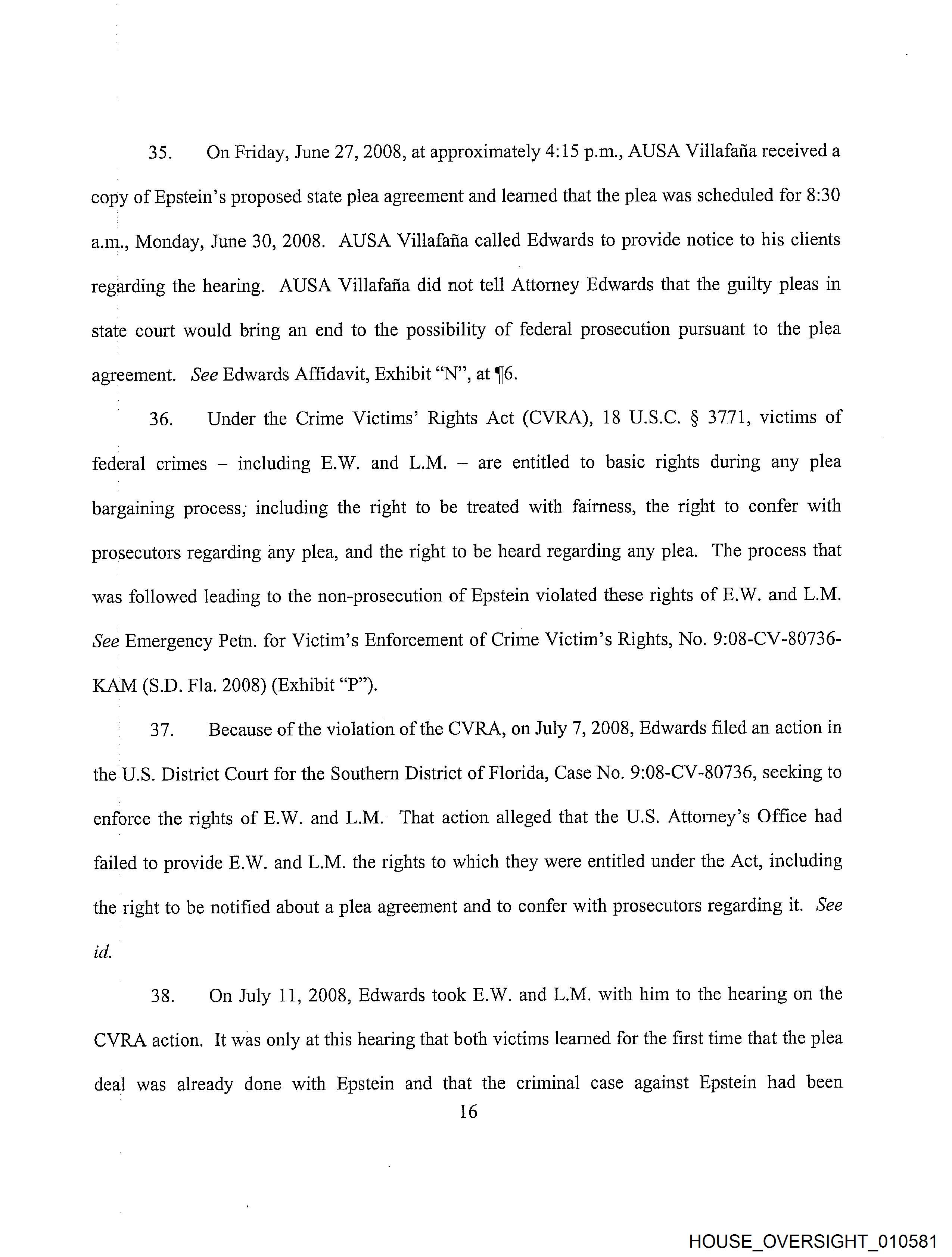 37. Because of the violation of the CVRA, on July 7, 2008, Edwards filed an action in