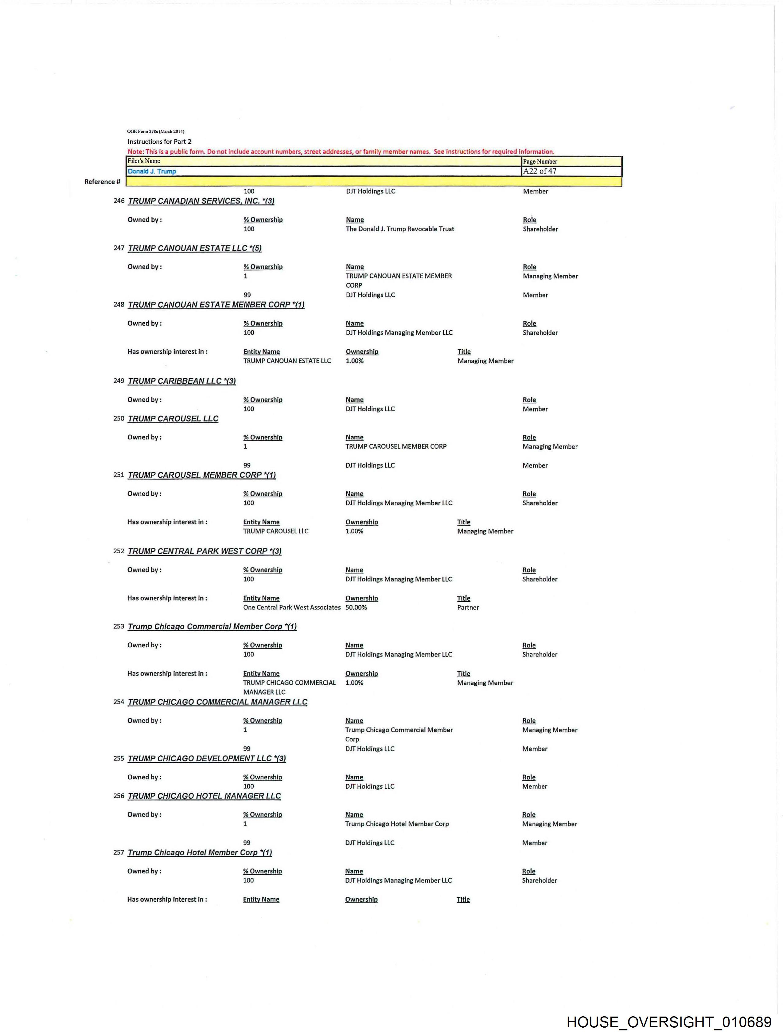 TRUMP CHICAGO COMMERCIAL = 1.00% Managing Member