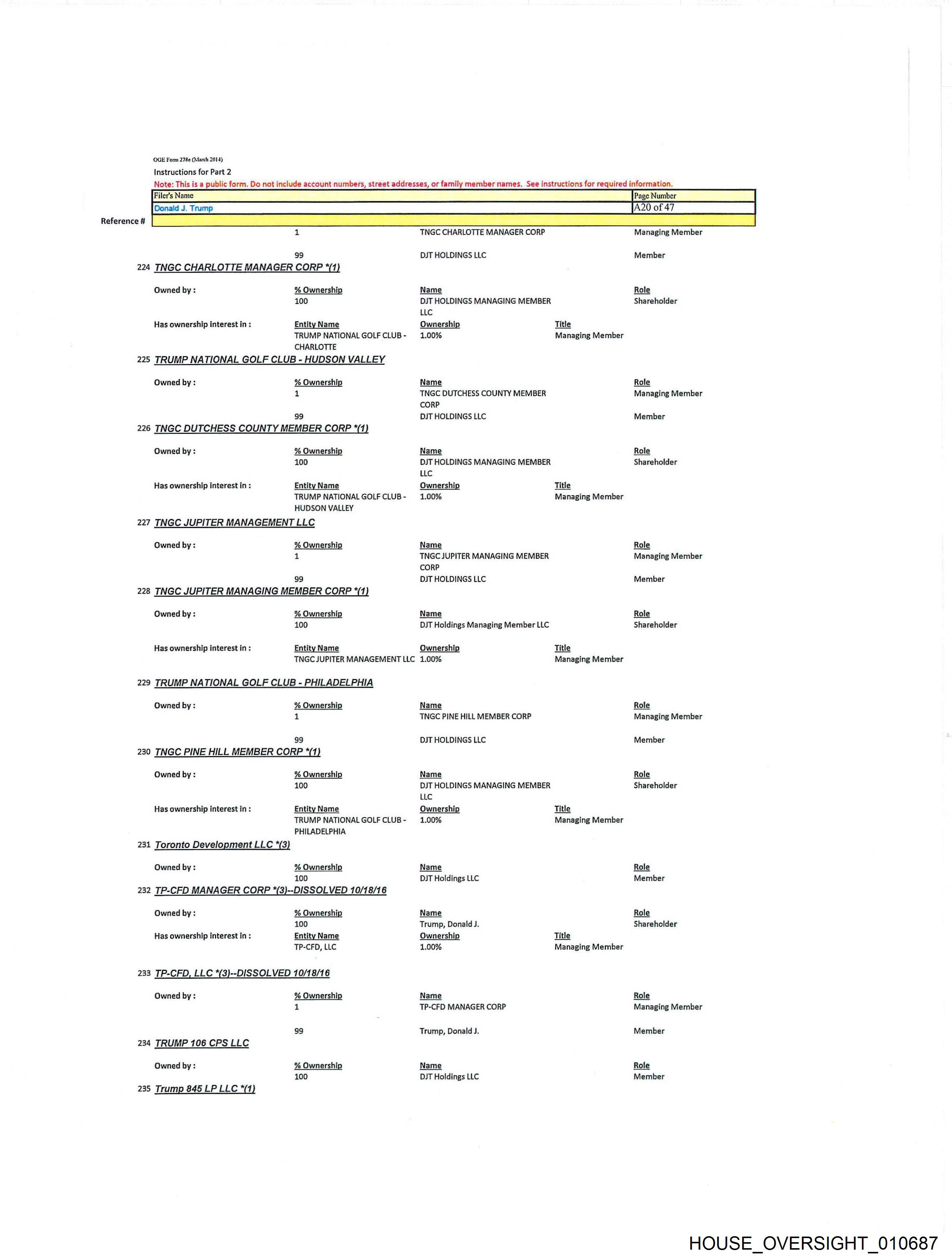 TRUMP NATIONALGOLFCLUB- 1.00% Managing Member