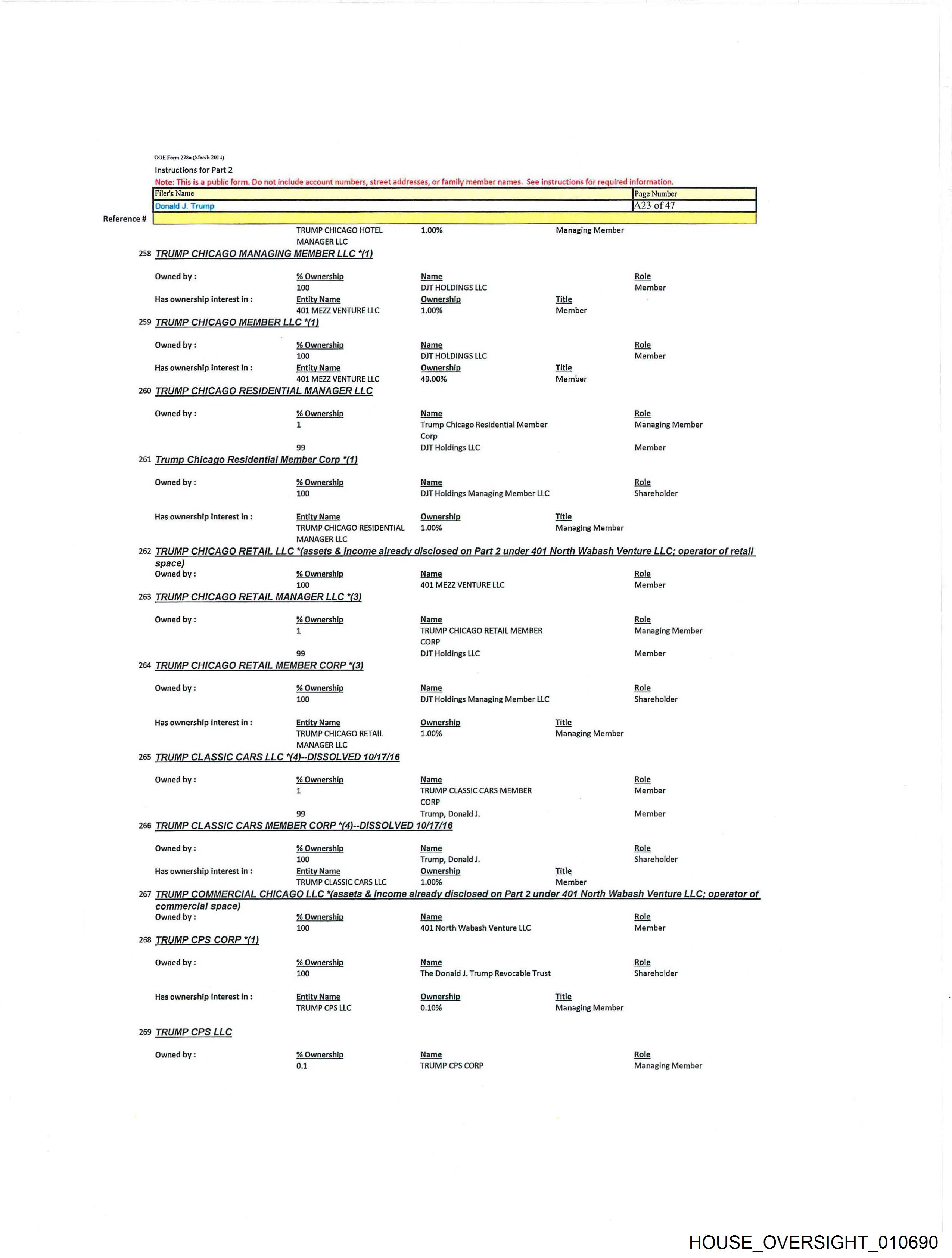 267 TRUMP COMMERCIAL CHICAGO LLC “(assets & income already disclosed on Part 2 under 401 North Wabash Venture LLC; operator of