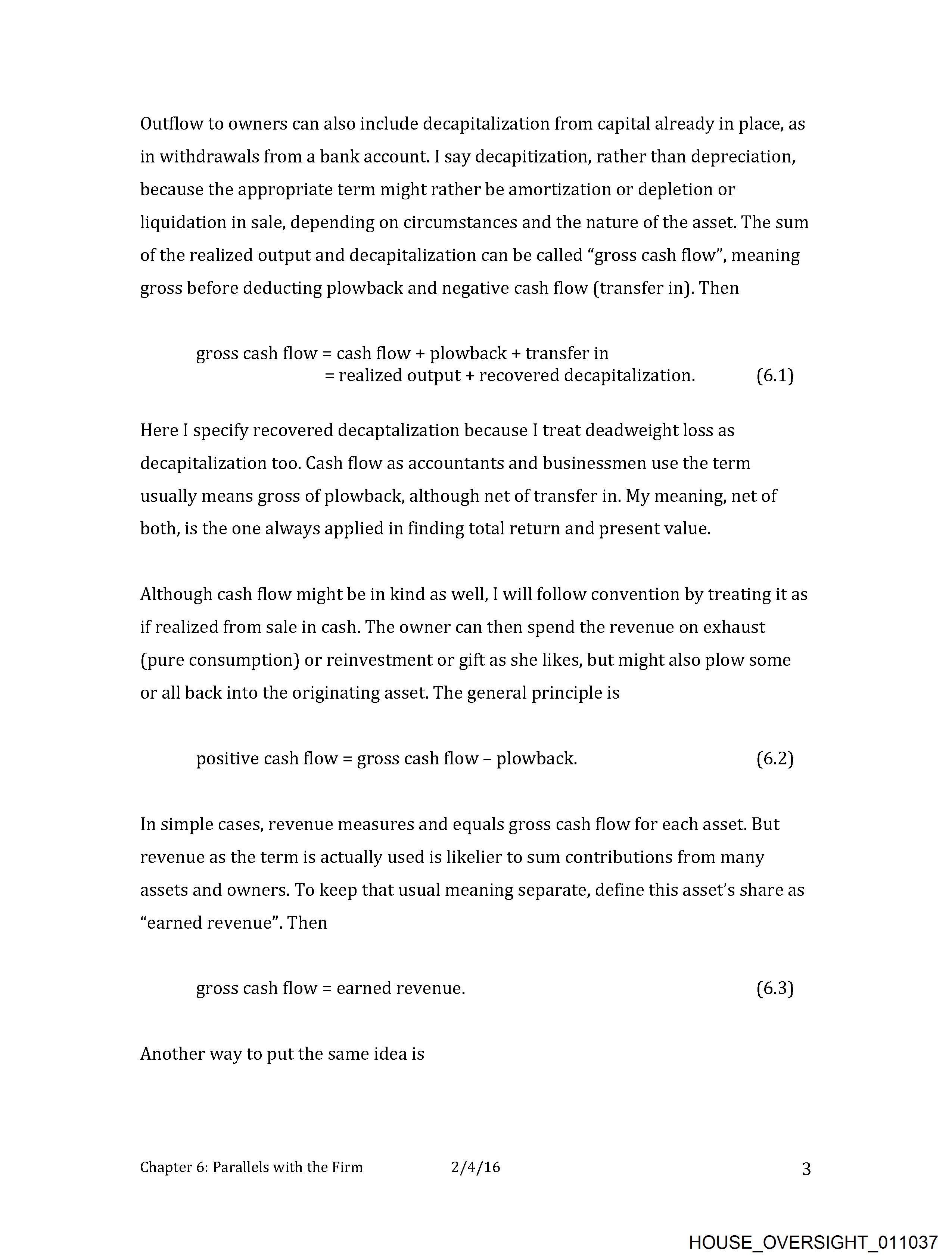 of the realized output and decapitalization can be called “gross cash flow”, meaning