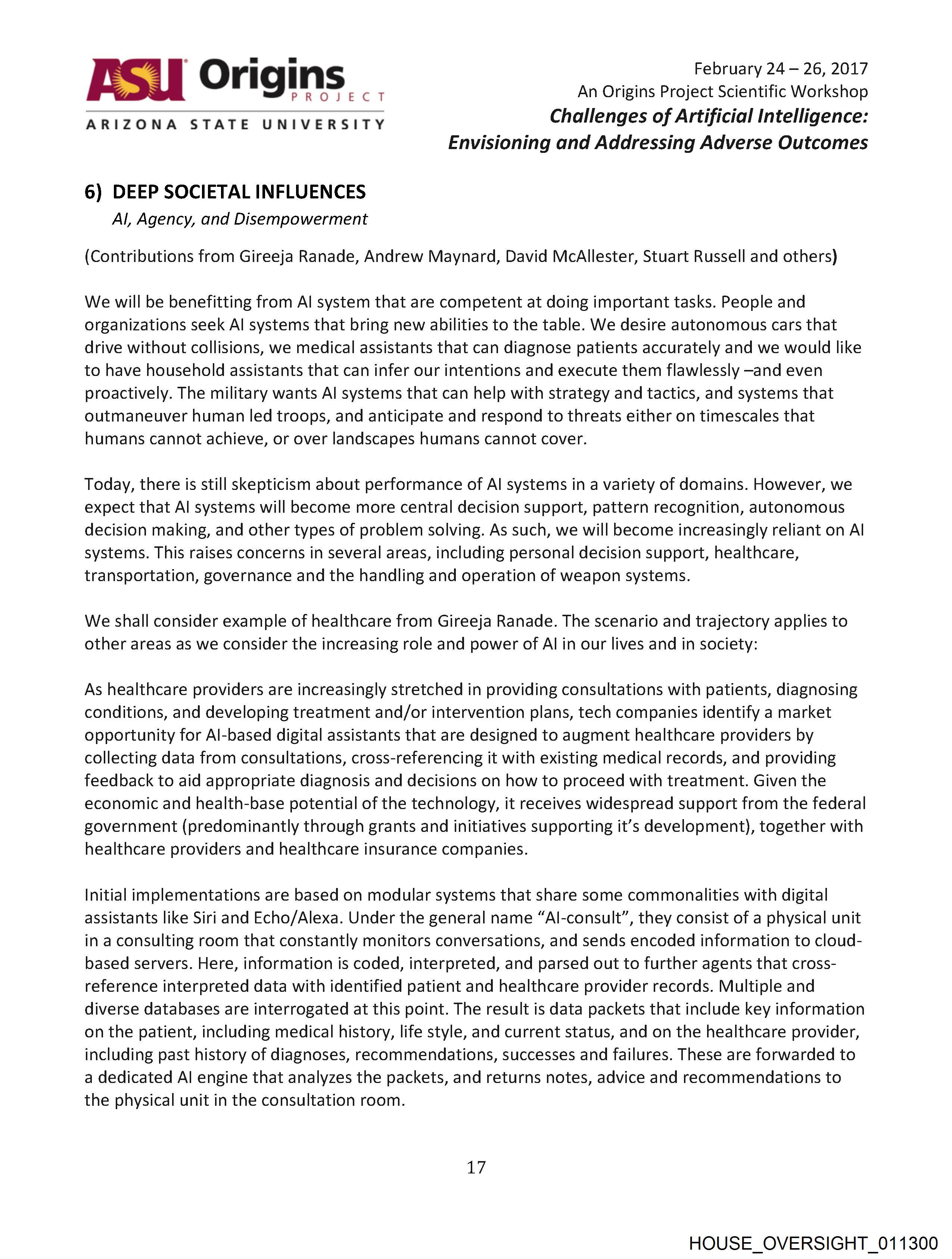 other areas as we consider the increasing role and power of Al in our lives and in society: