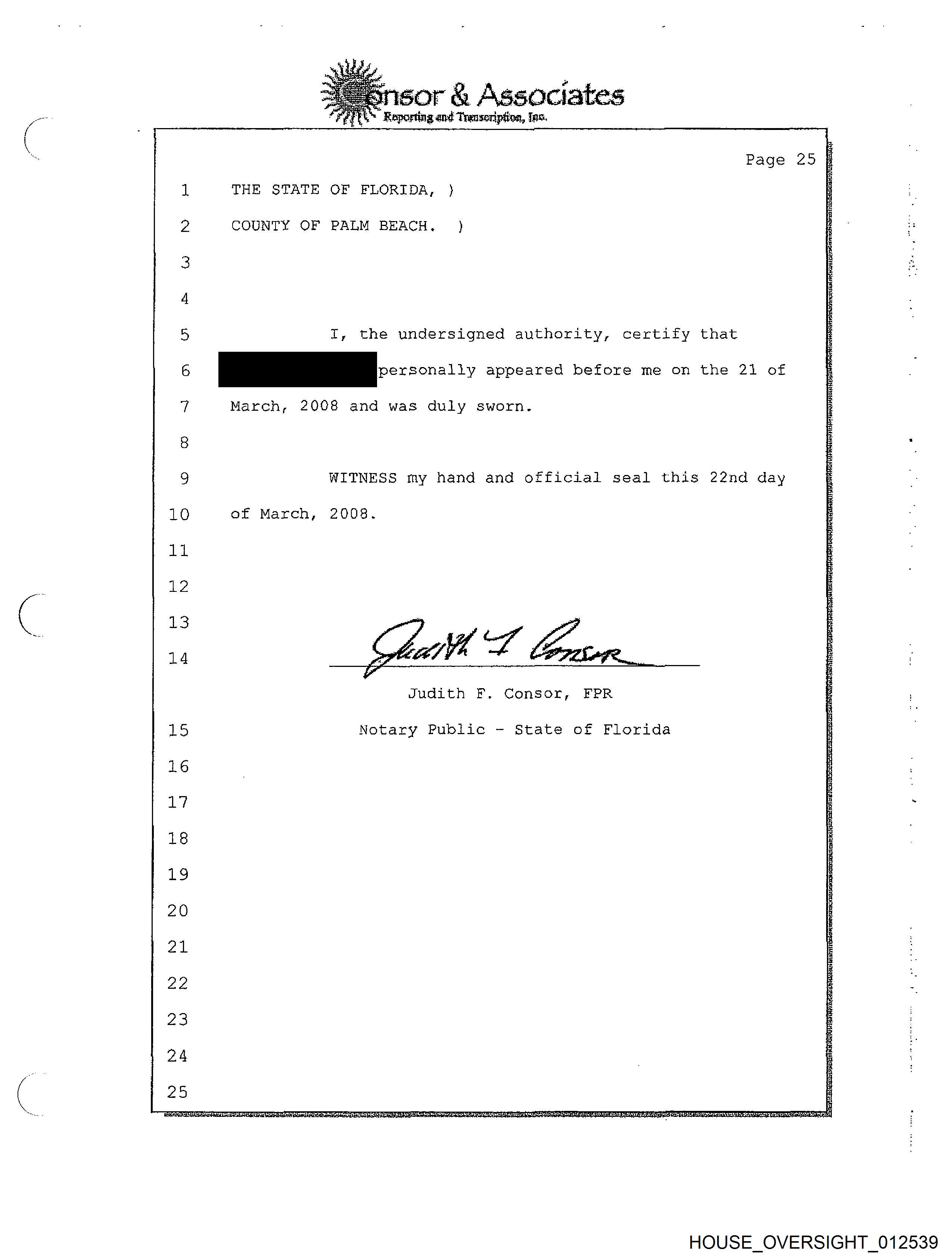 March, 2008 and was duly sworn. z