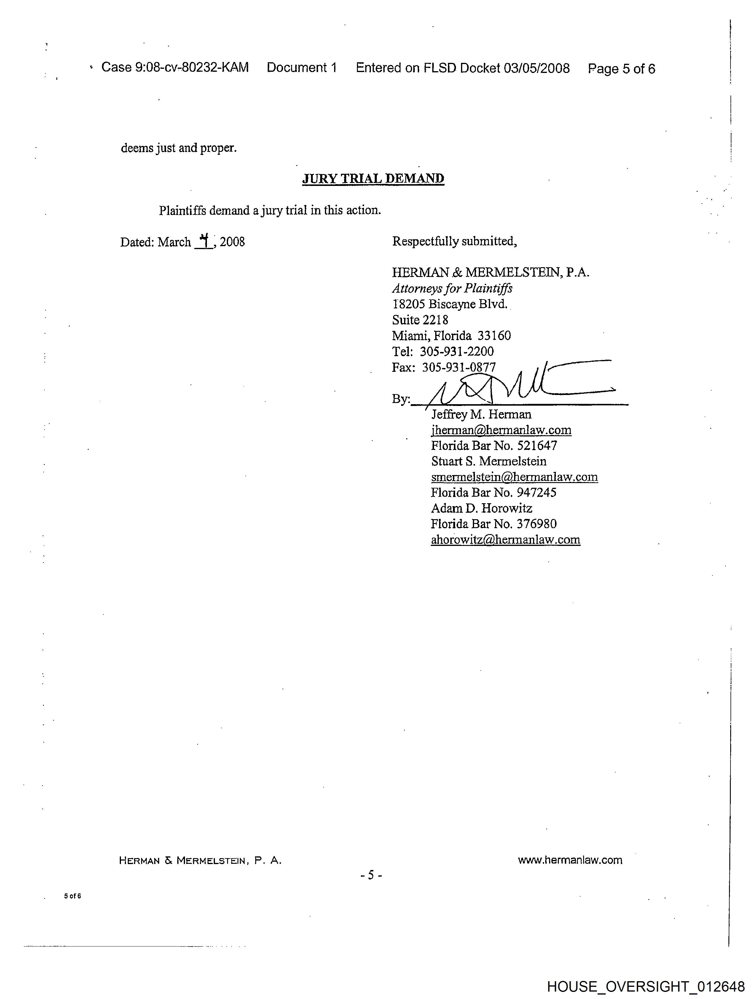 * Case 9:08-cv-80232-KAM Document1 Entered on FLSD Docket 03/05/2008 Page 5of6