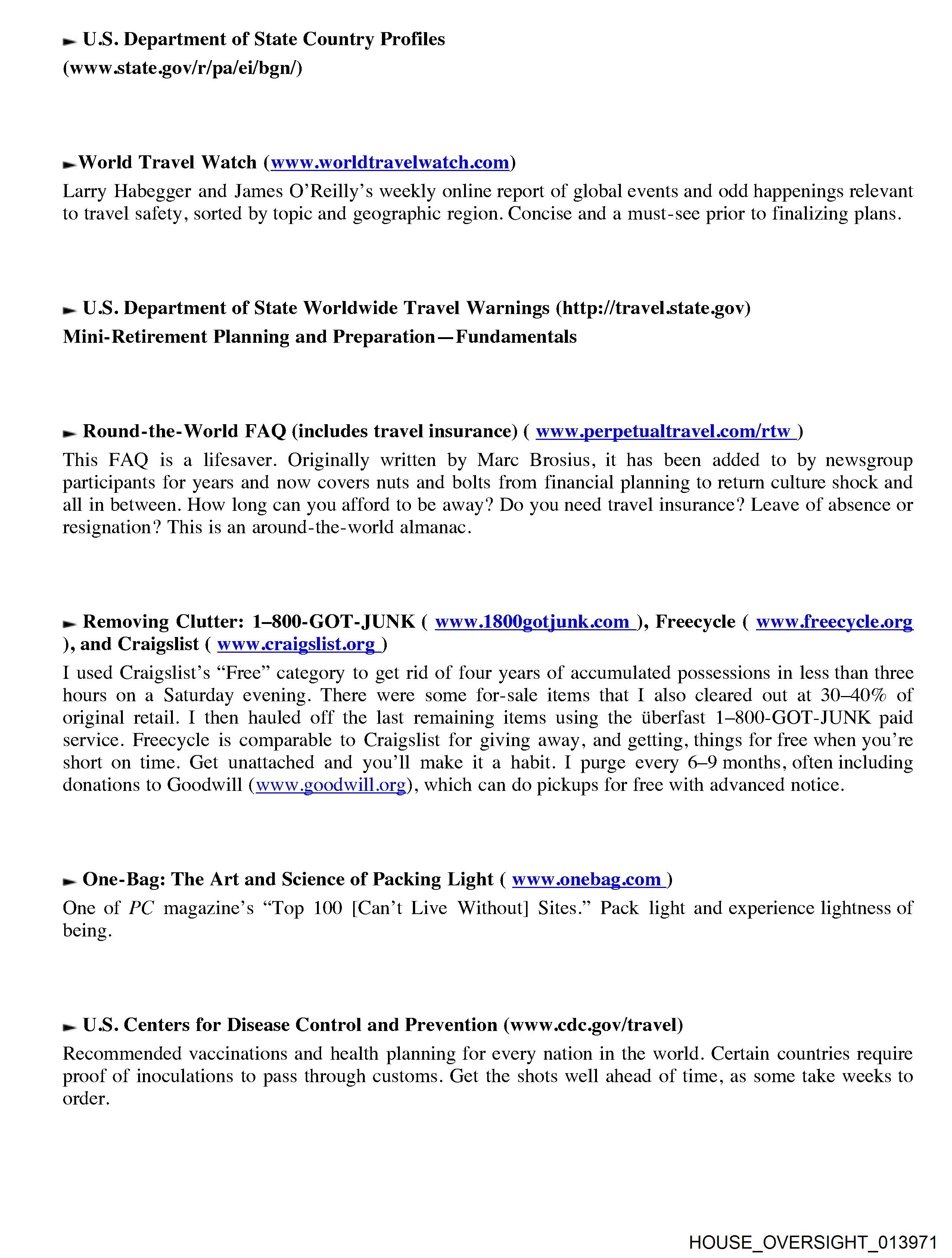 to travel safety, sorted by topic and geographic region. Concise and a must-see prior to finalizing plans.