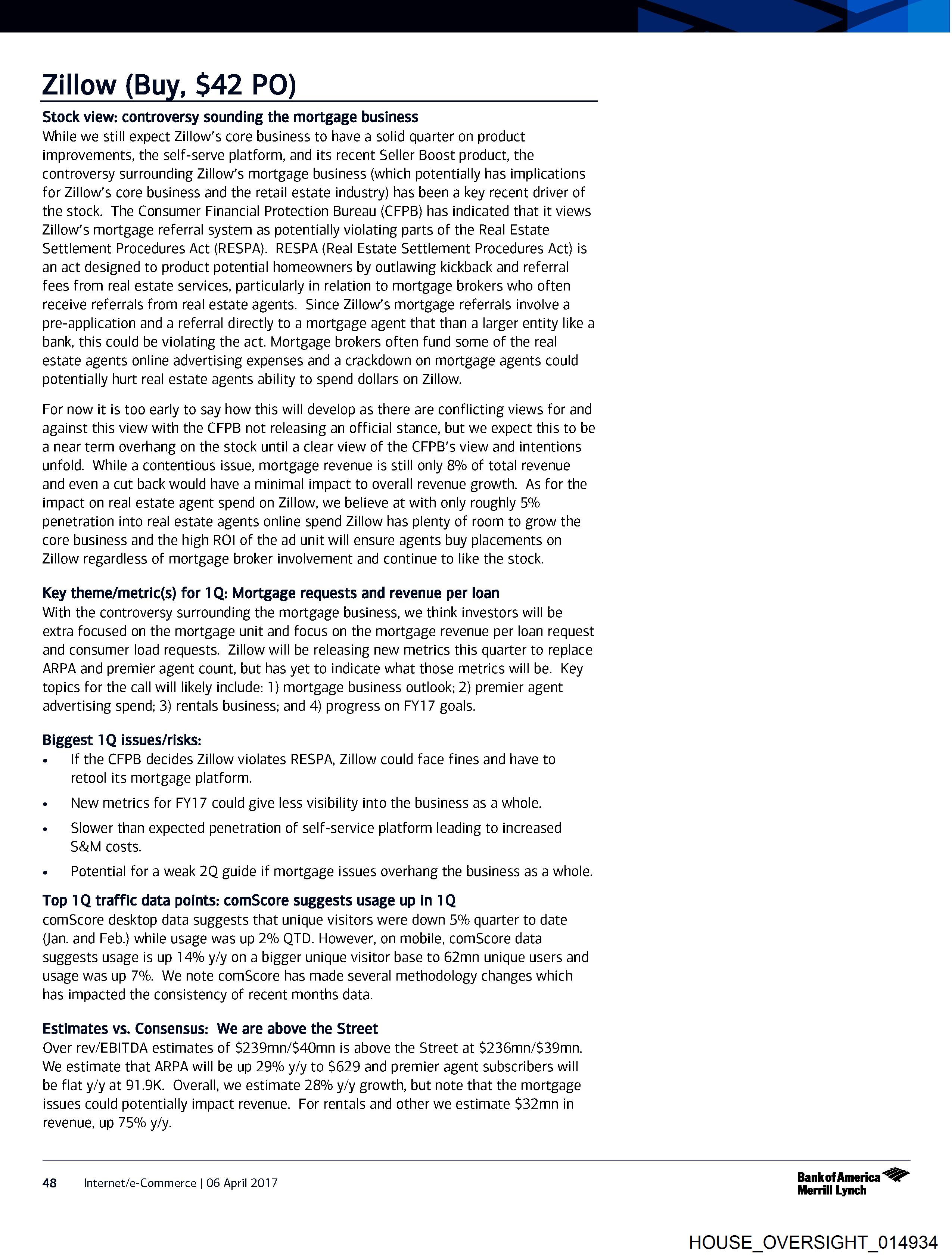 controversy surrounding Zillow’s mortgage business (which potentially has implications