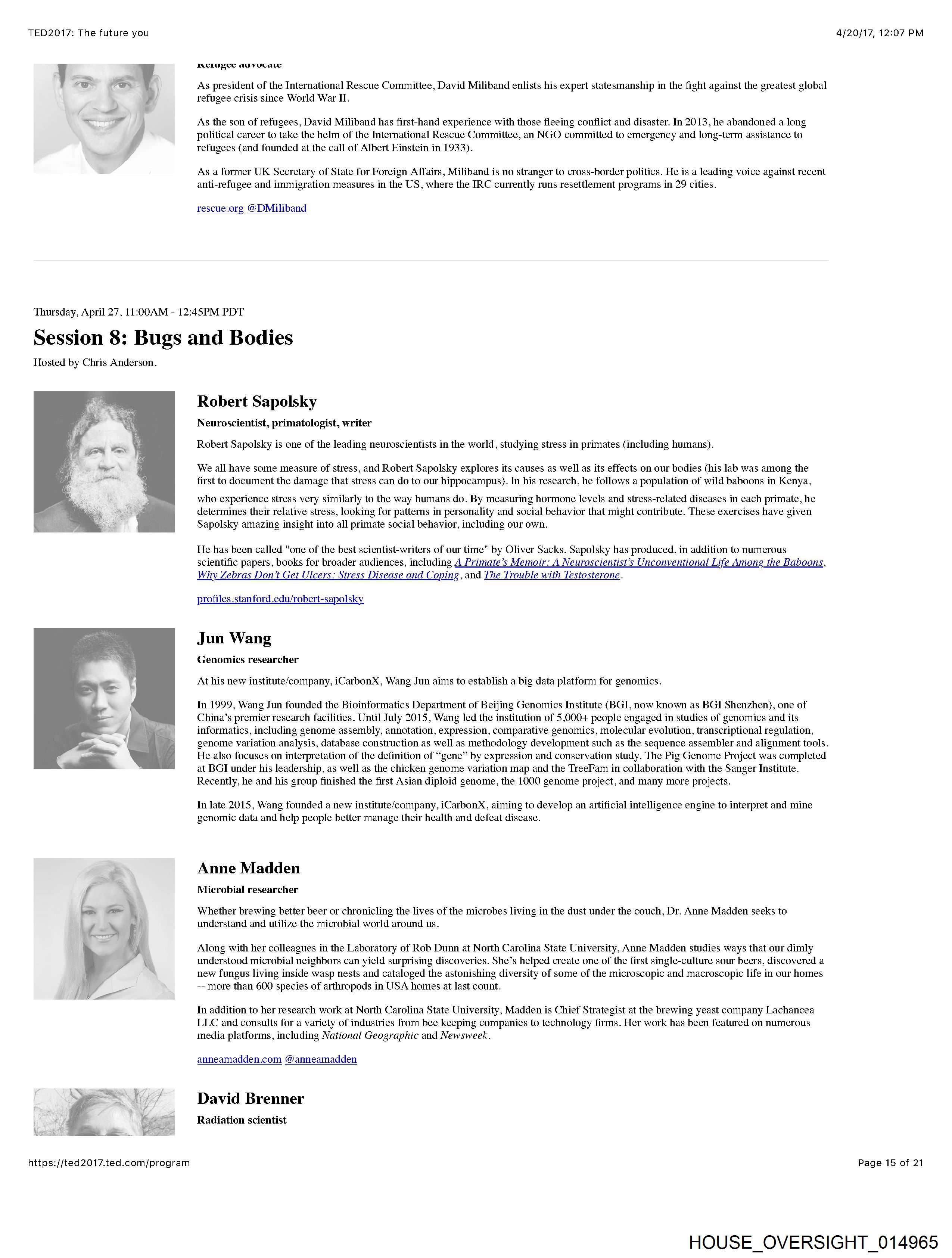 China’s premier research facilities. Until July 2015, Wang led the institution of 5,000+ people engaged in studies of genomics and its