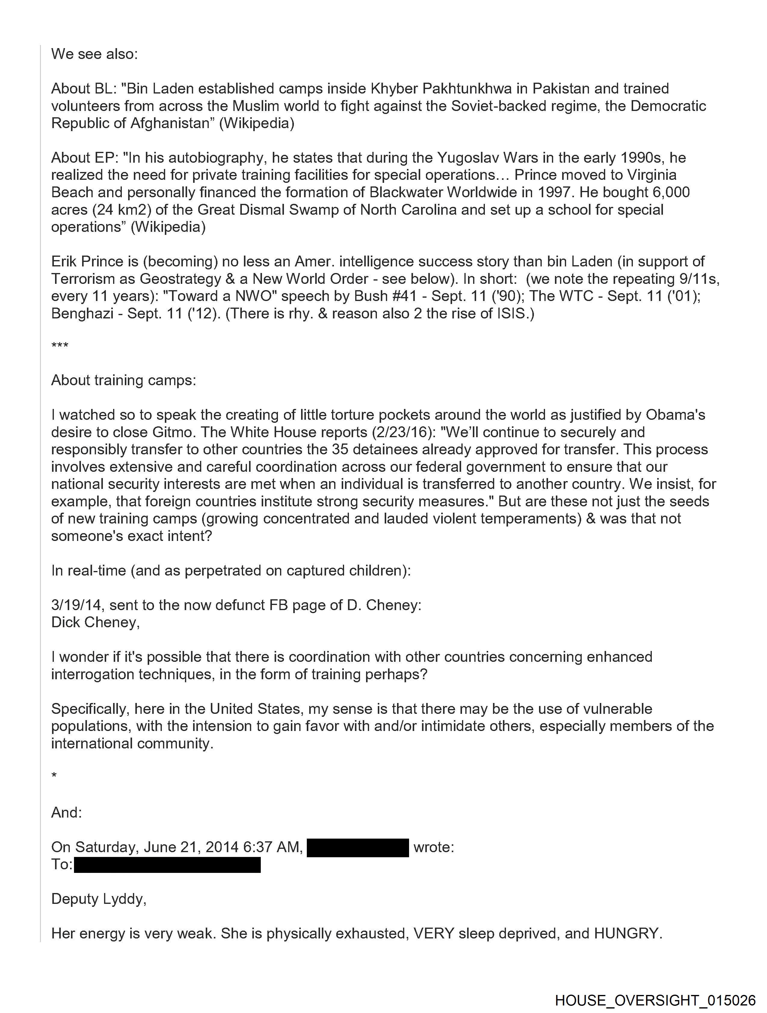 3/19/14, sent to the now defunct FB page of D. Cheney: