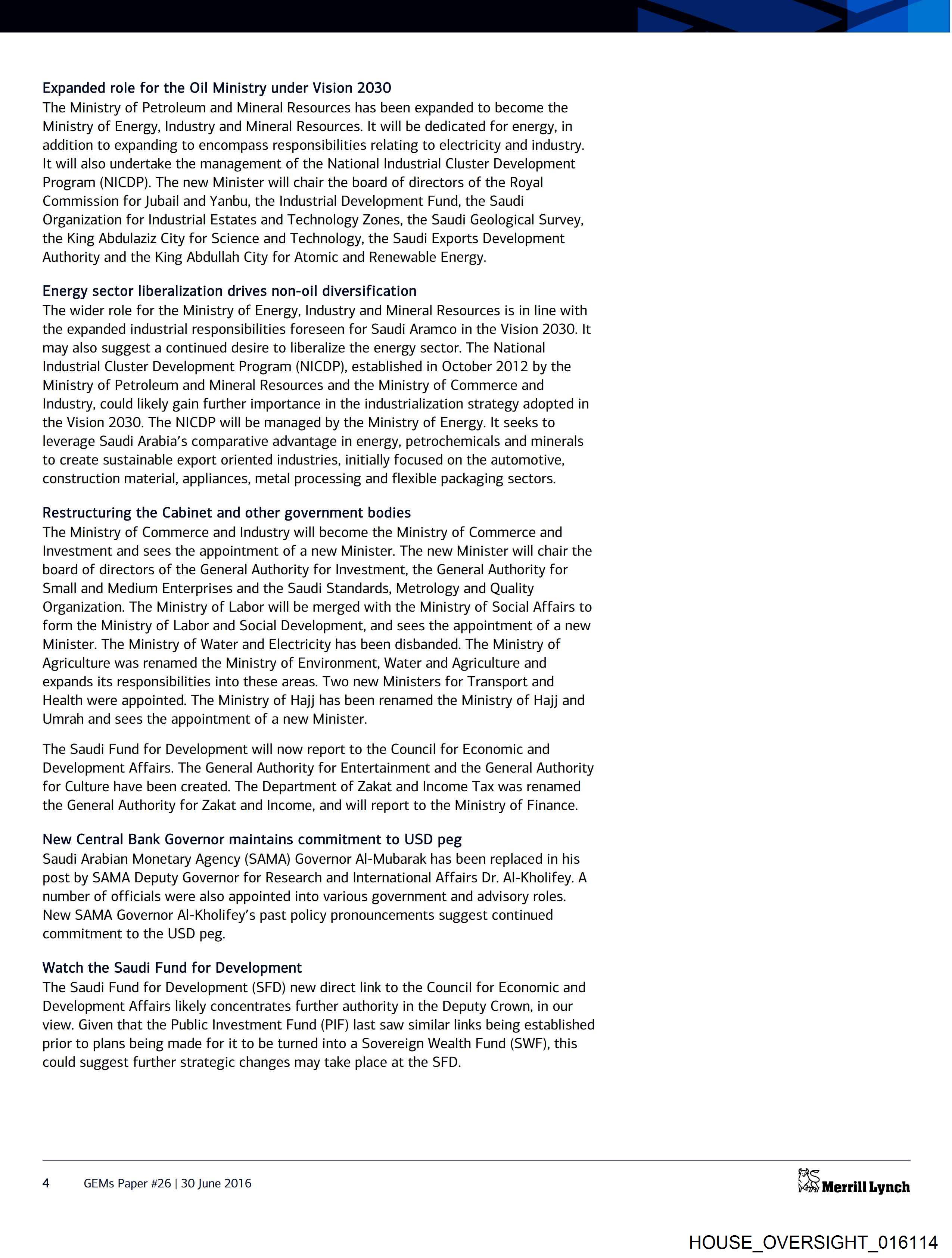 The Ministry of Petroleum and Mineral Resources has been expanded to become the