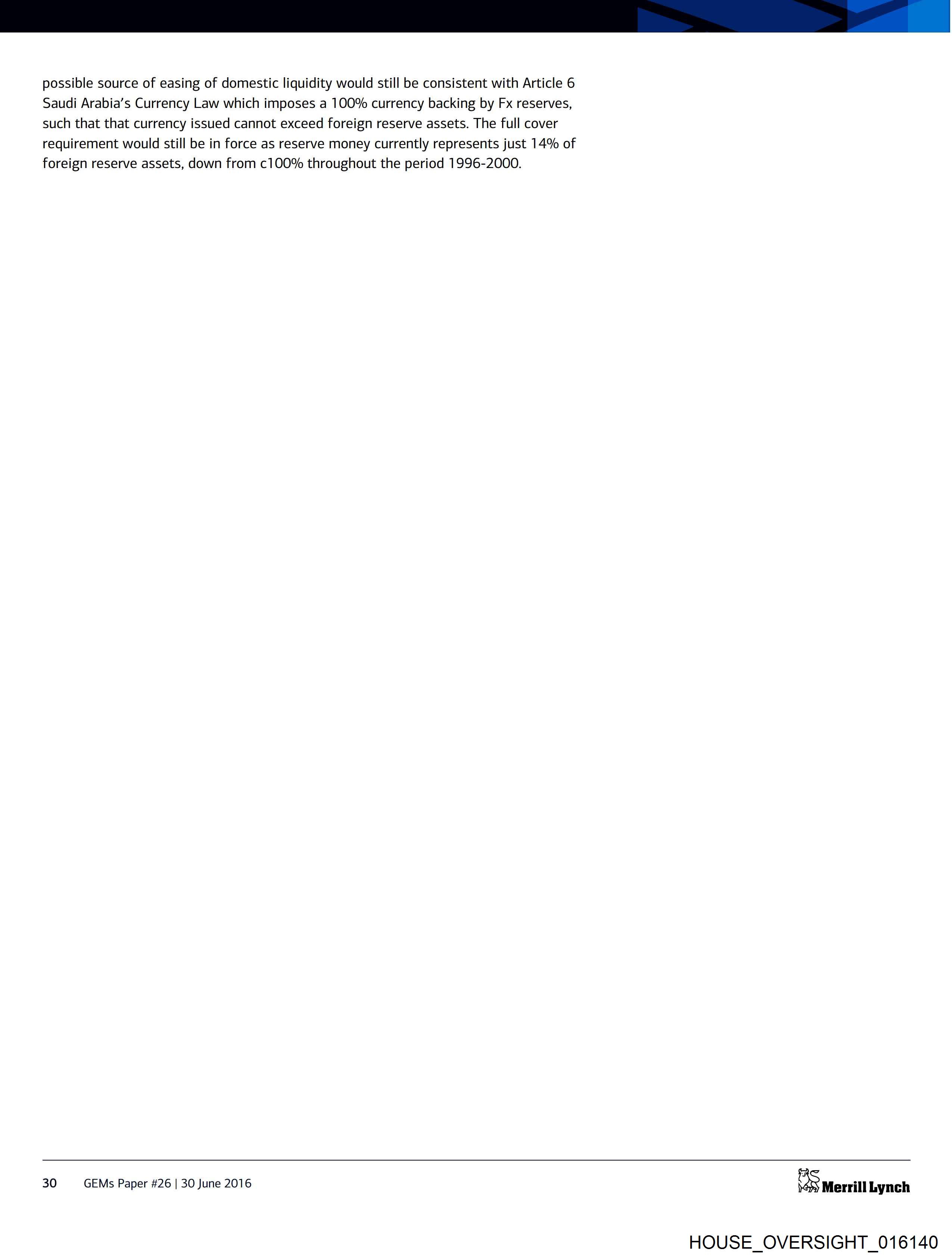 Saudi Arabia’s Currency Law which imposes a 100% currency backing by Fx reserves,