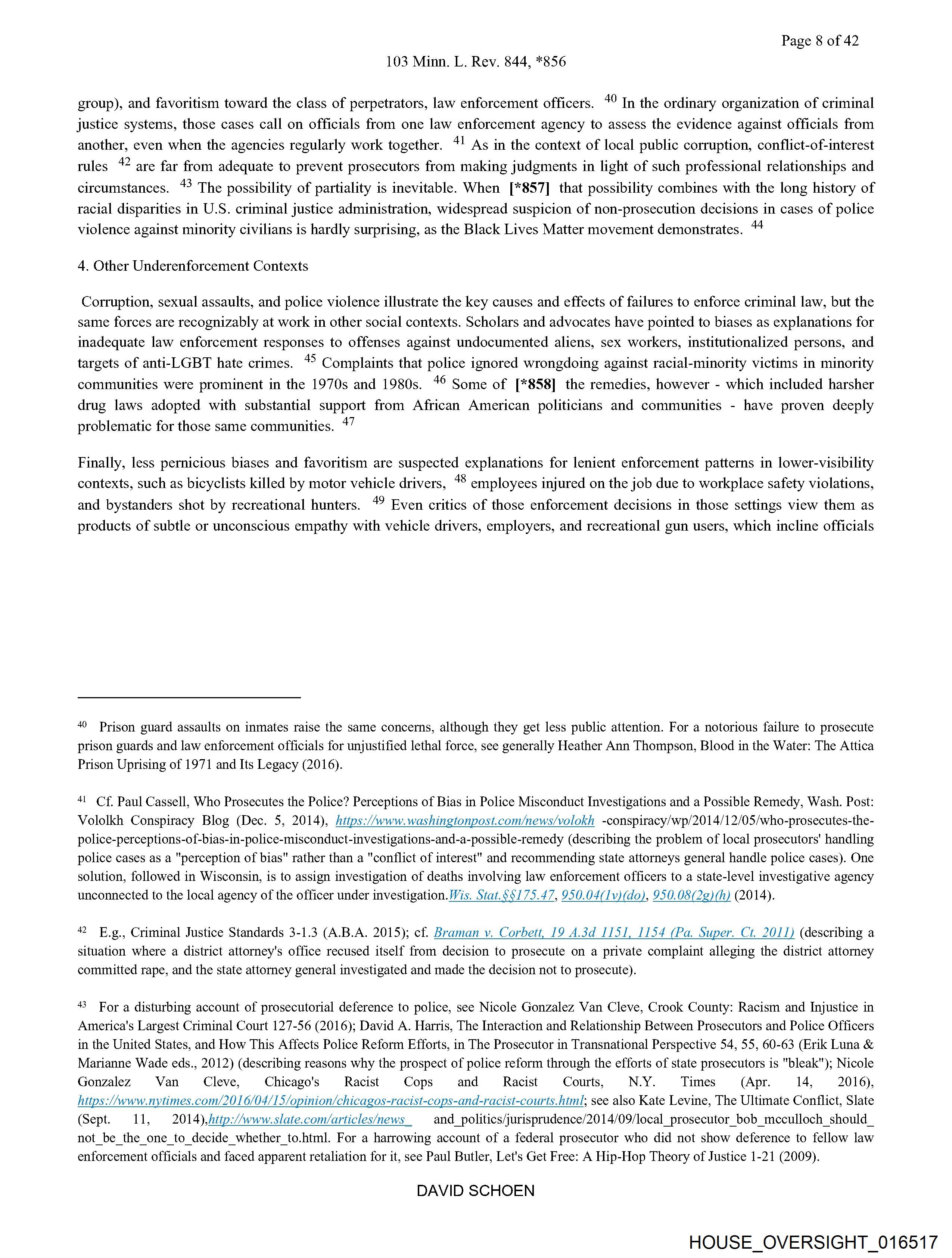 41 Cf. Paul Cassell, Who Prosecutes the Police? Perceptions of Bias in Police Misconduct Investigations and a Possible Remedy, Wash. Post: