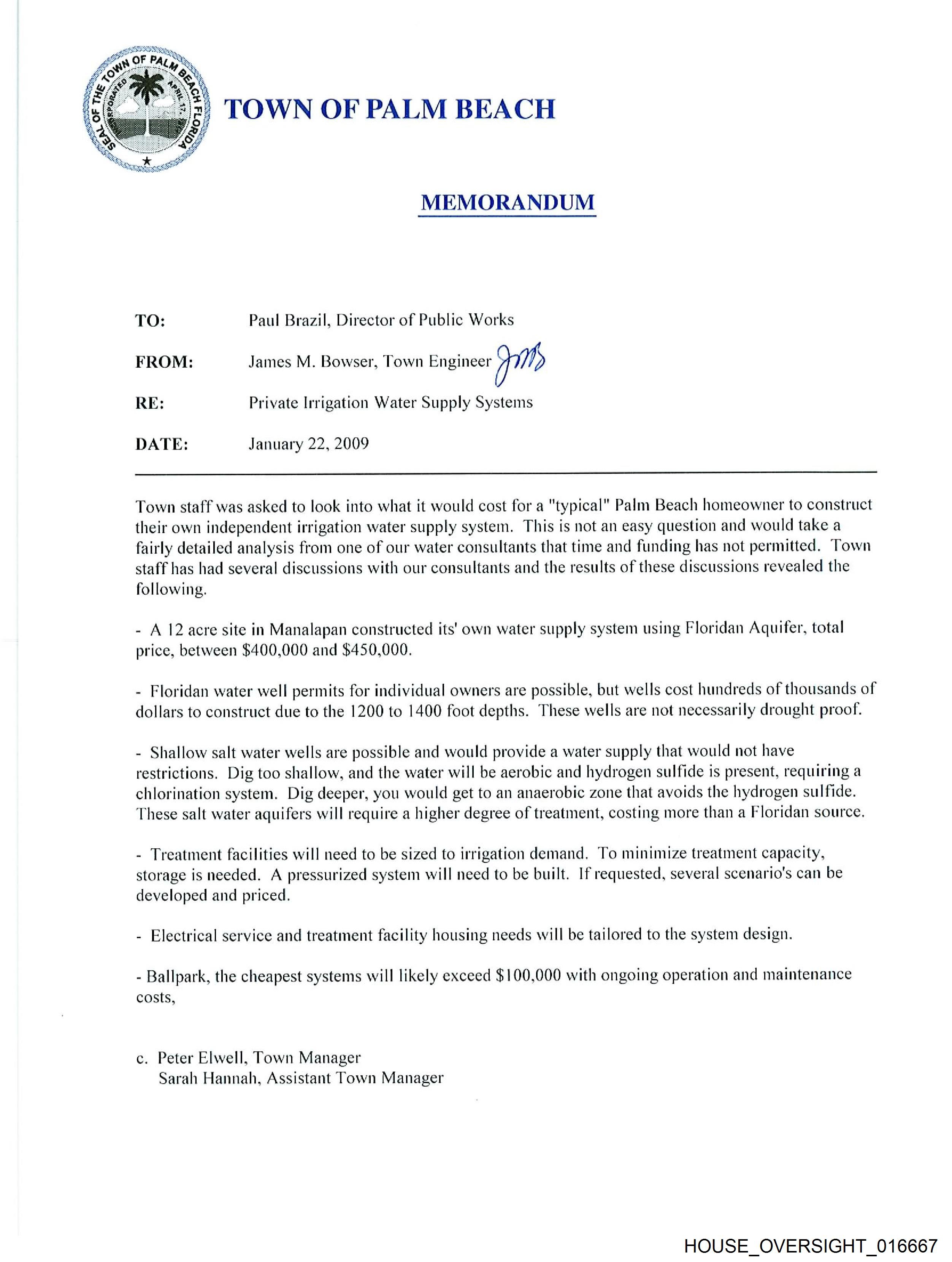 fairly detailed analysis from one of our water consultants that time and funding has not permitted. Town