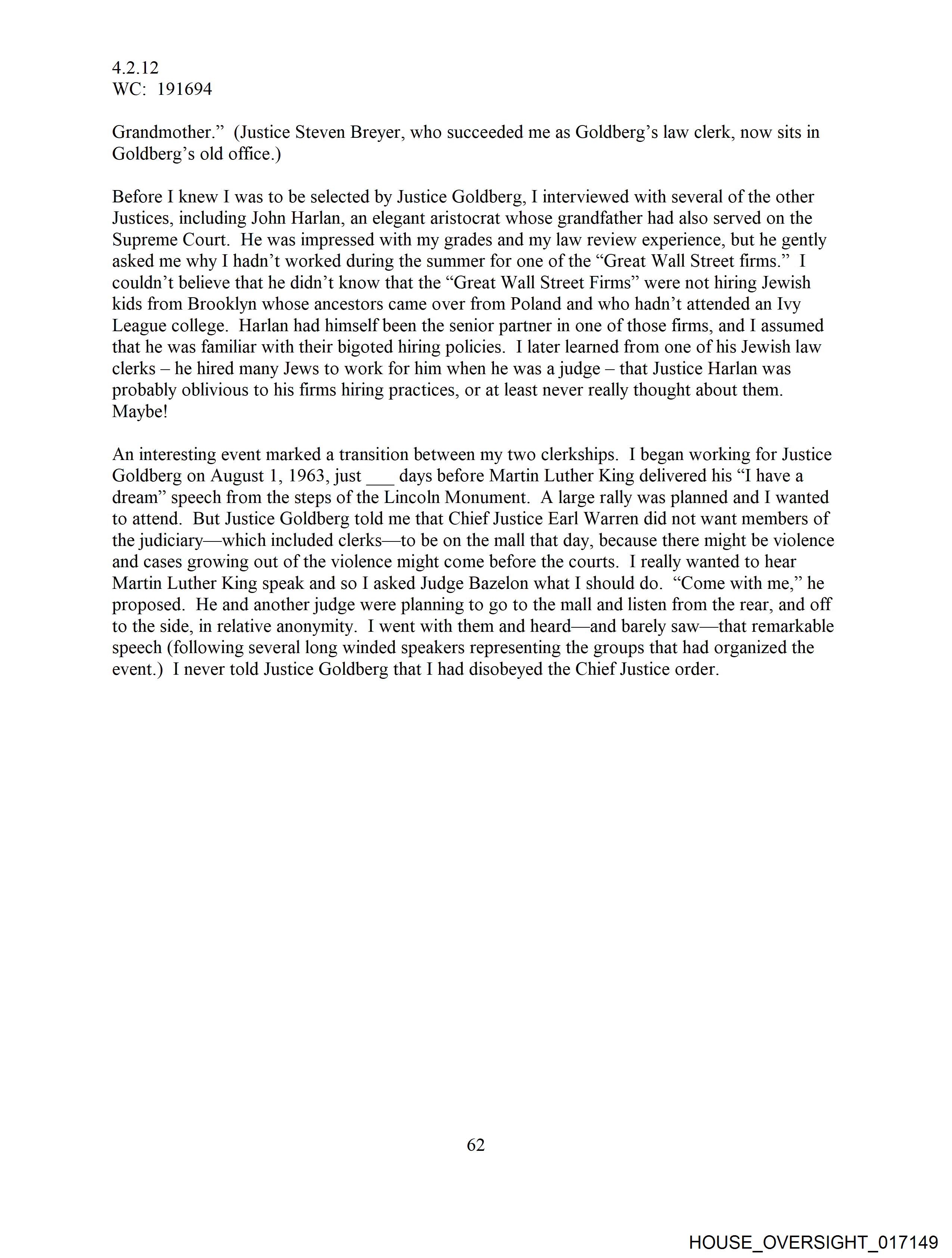 Grandmother.” (Justice Steven Breyer, who succeeded me as Goldberg’s law clerk, now sits in