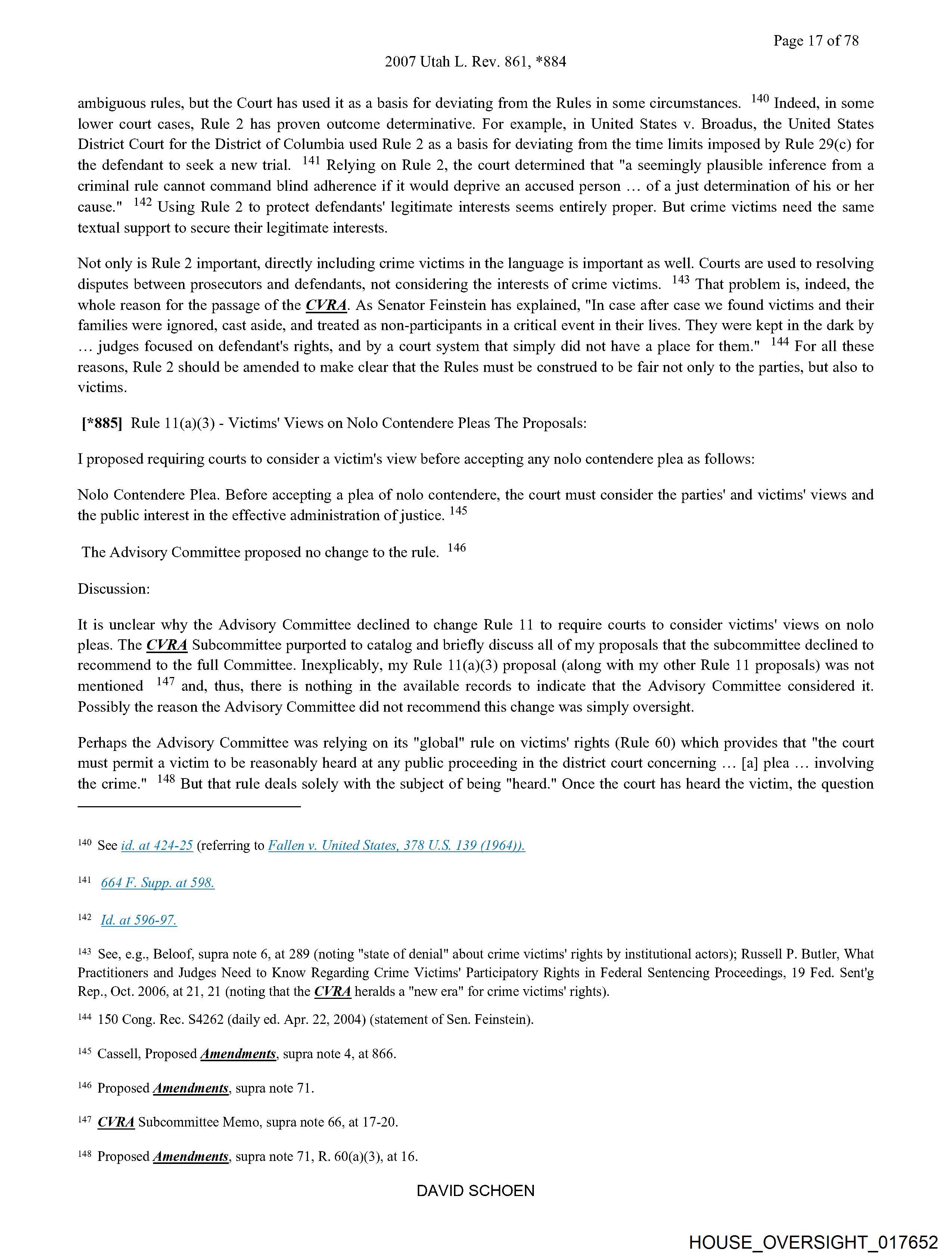 45 Cassell, Proposed Amendments, supra note 4, at 866.
