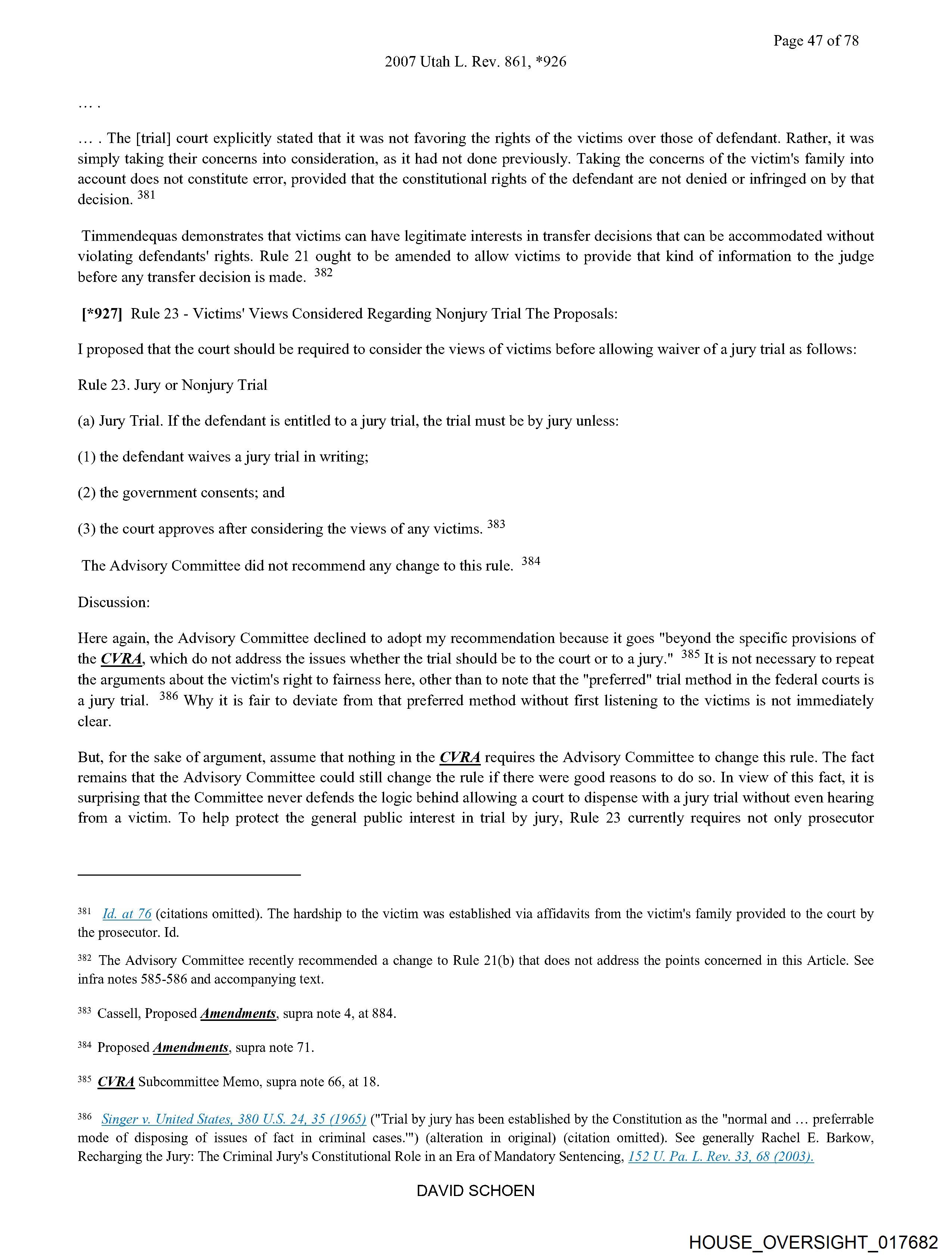 383 Cassell, Proposed Amendments, supra note 4, at 884.