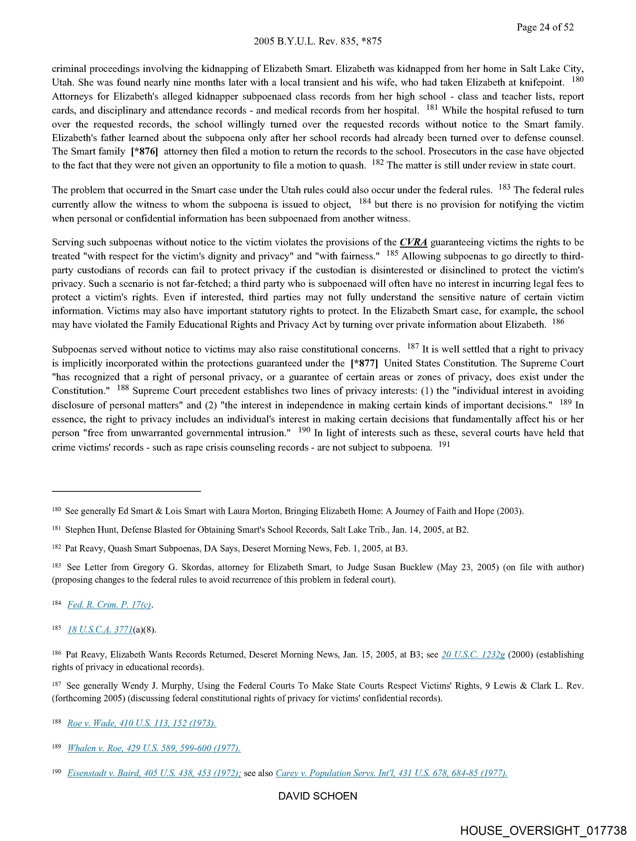 information. Victims may also have important statutory rights to protect. In the Elizabeth Smart case, for example, the school