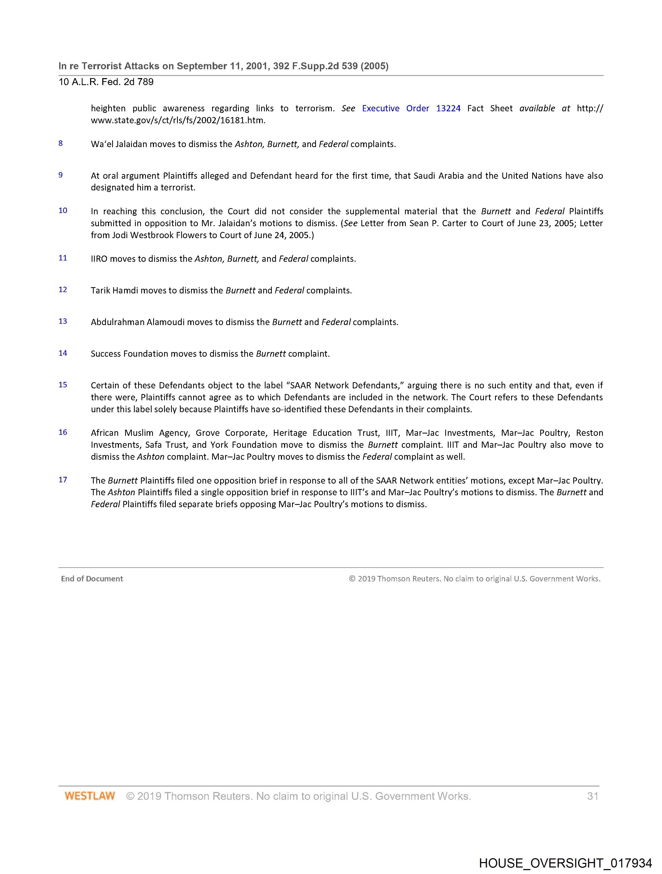 13. Abdulrahman Alamoudi moves to dismiss the Burnett and Federal complaints.