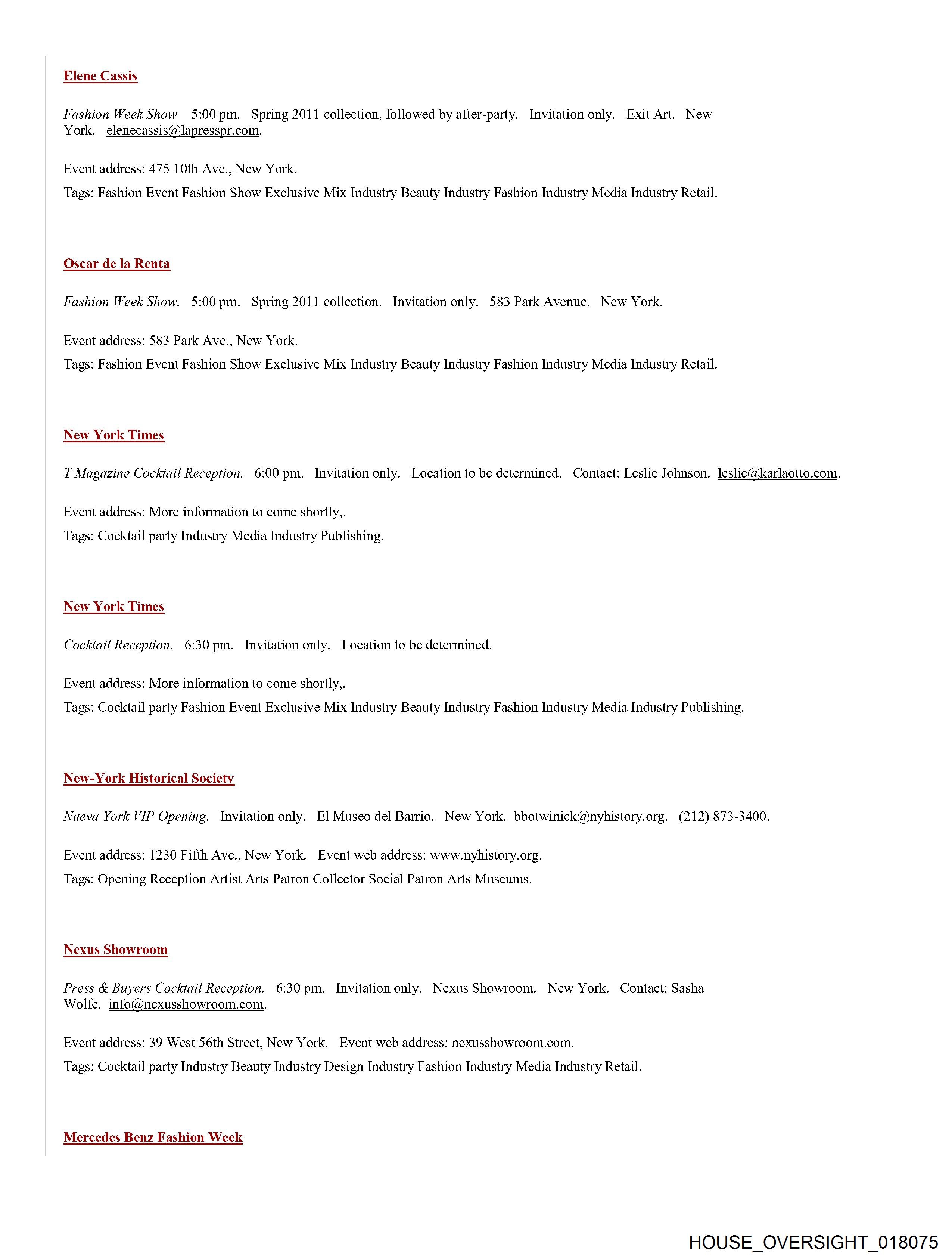 Fashion Week Show. 5:00pm. Spring 2011 collection. Invitation only. 583 Park Avenue. New York.