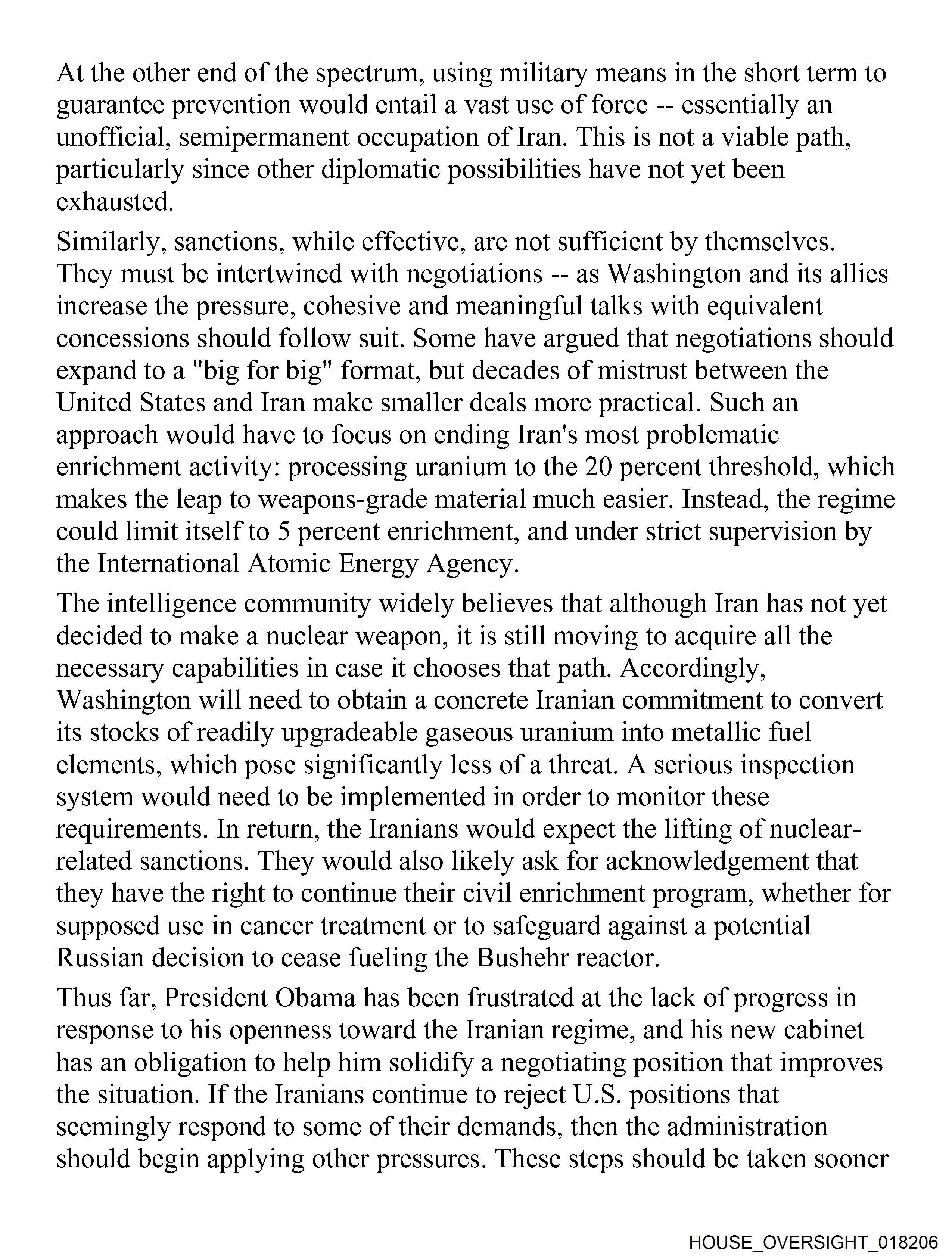 requirements. In return, the Iranians would expect the lifting of nuclear-