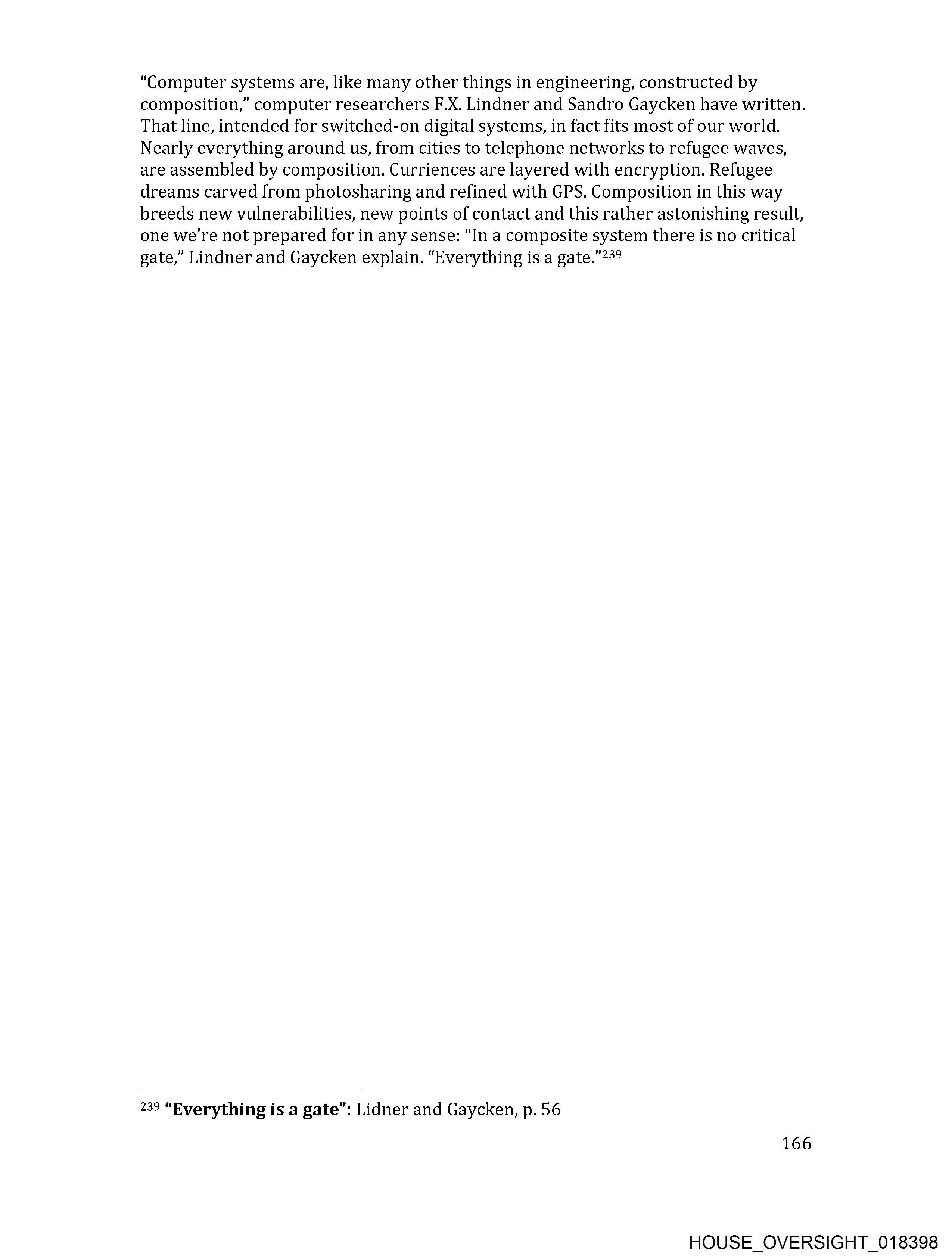 239 “Everything is a gate”: Lidner and Gaycken, p. 56