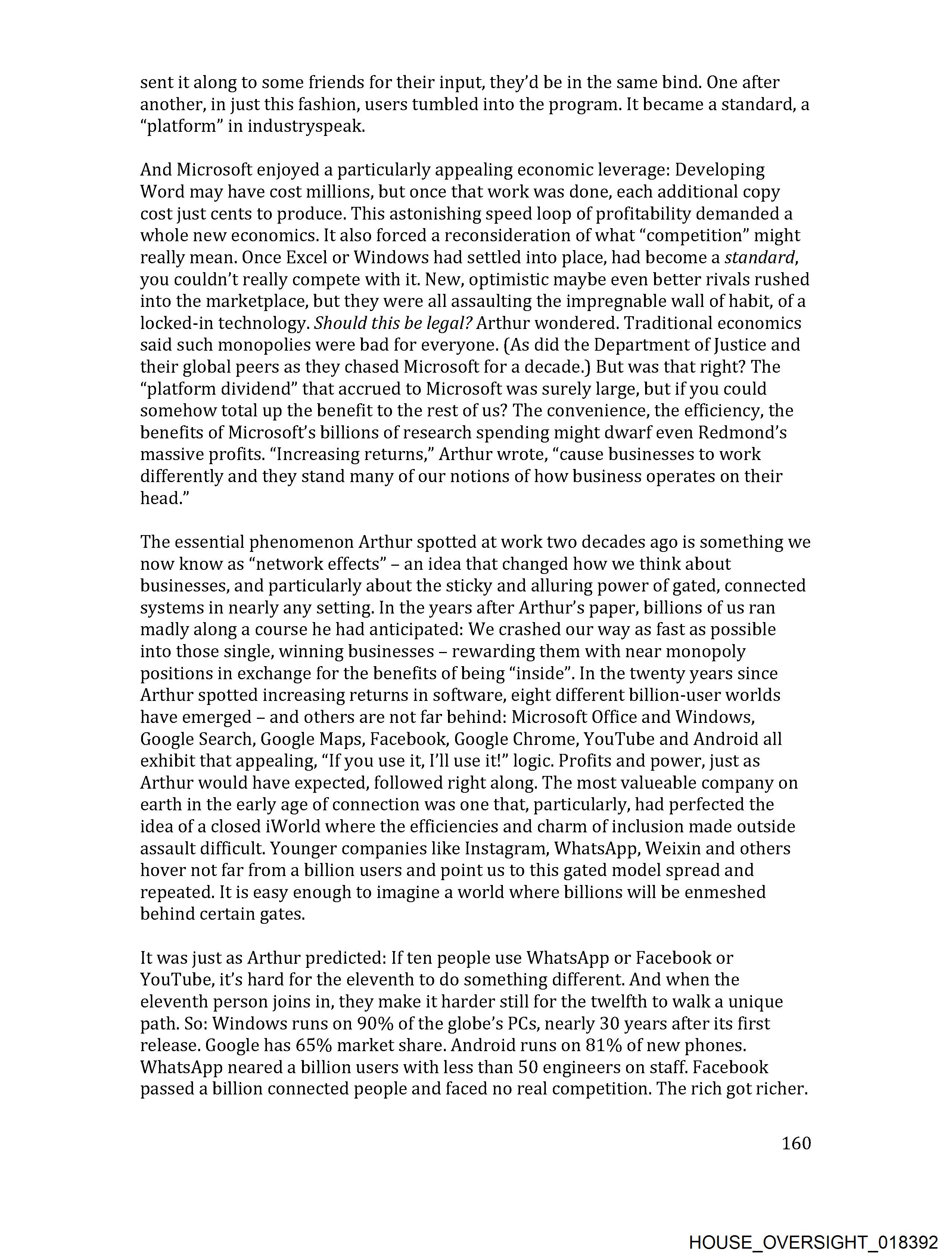 massive profits. “Increasing returns,” Arthur wrote, “cause businesses to work