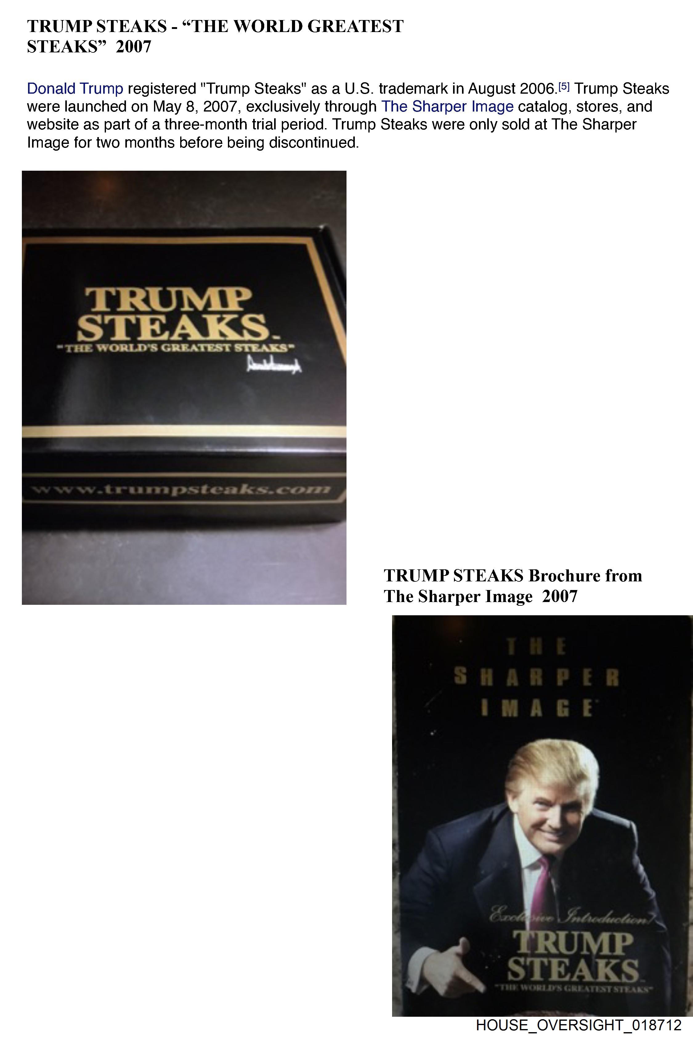 website as part of a three-month trial period. Trump Steaks were only sold at The Sharper