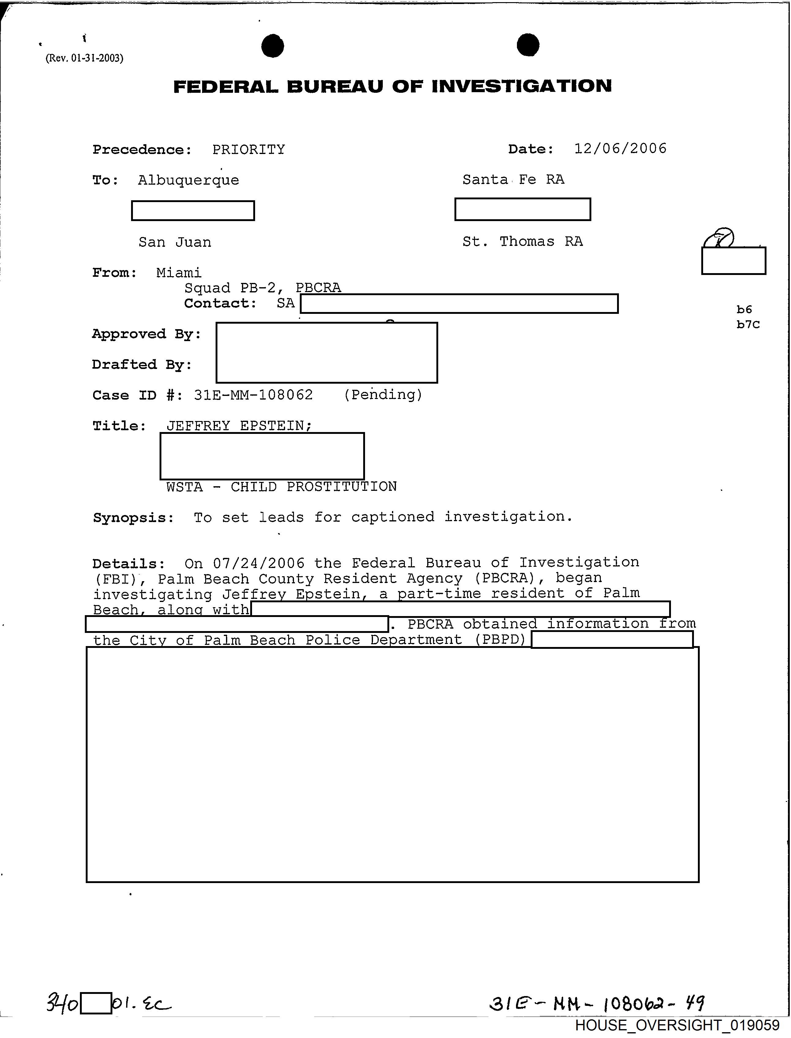 (FBI), Palm Beach County Resident Agency (PBCRA), began