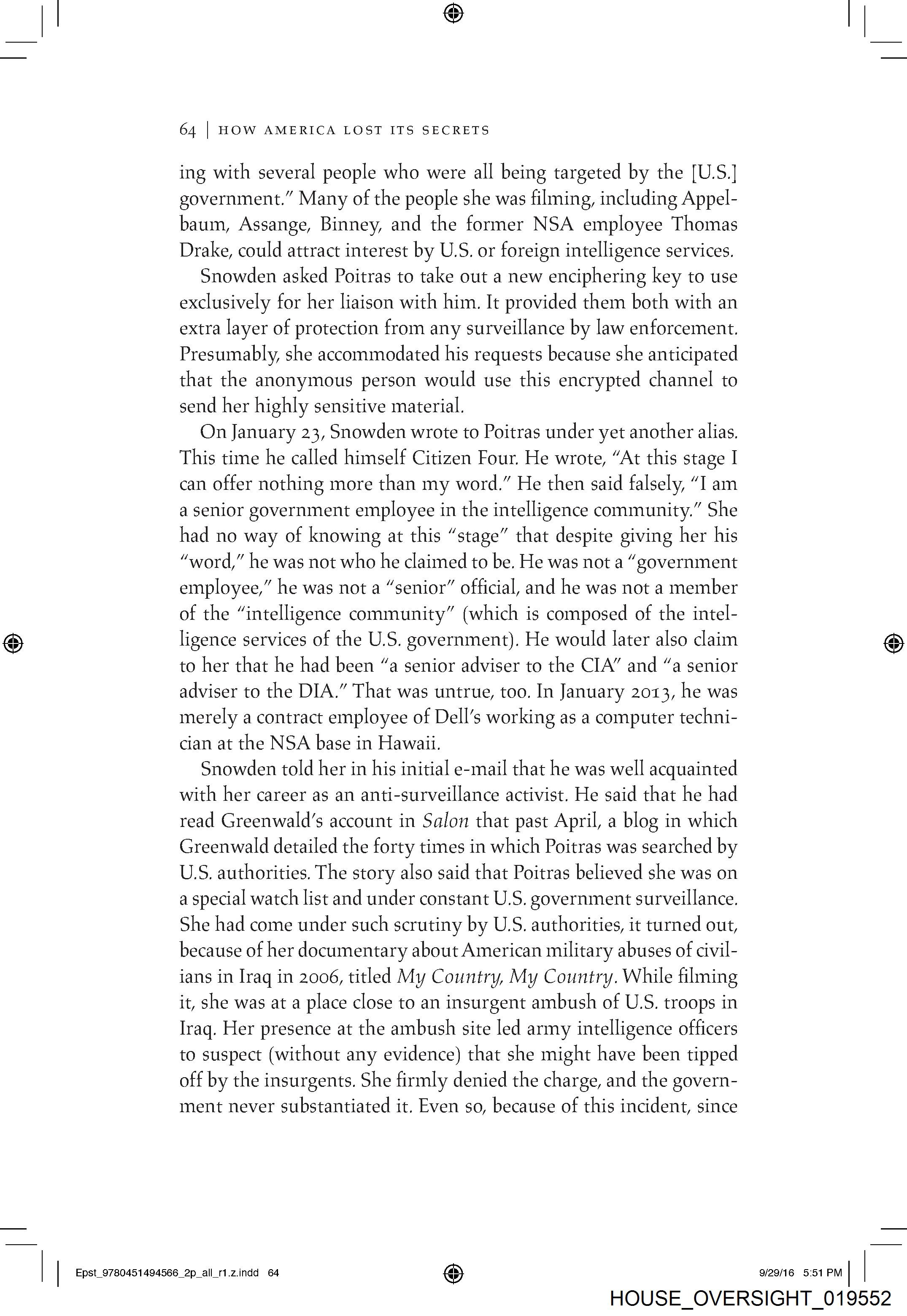 On January 23, Snowden wrote to Poitras under yet another alias.