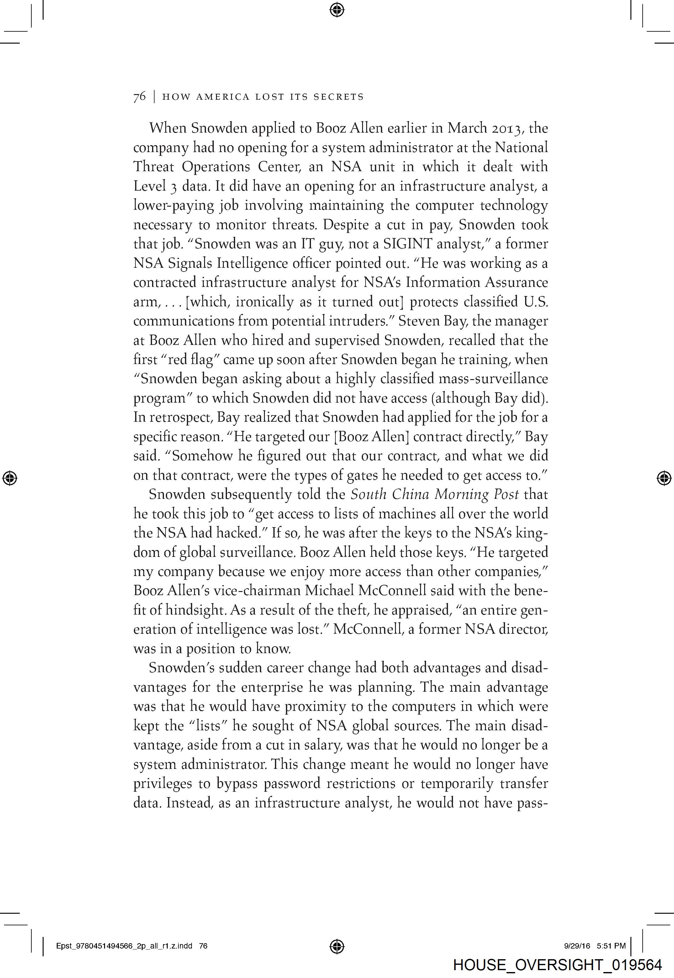 dom of global surveillance. Booz Allen held those keys. “He targeted