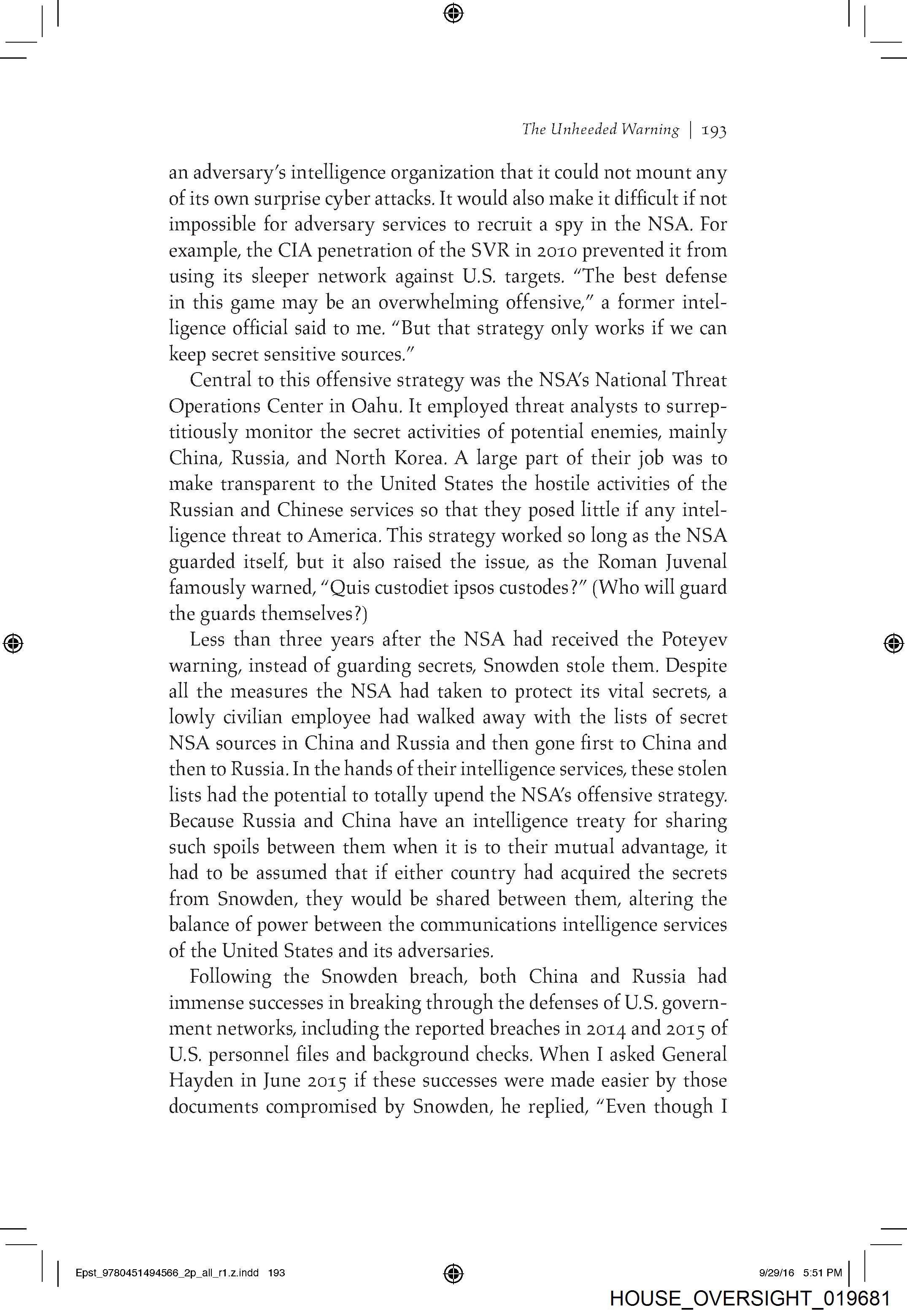 Operations Center in Oahu. It employed threat analysts to surrep-